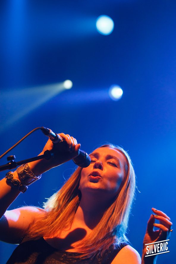 Le concert commence par une intro de Pink Floyd (A New Machine) qui pose tout de suite l’atmosphère du concert. Anathema commence fort par le dyptique Untouchable alternant une lente montée aérienne avec une deuxième partie plus rythmée mettant en valeur la voix subtile de la chanteuse Lee Douglas.