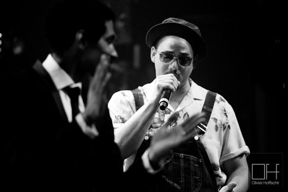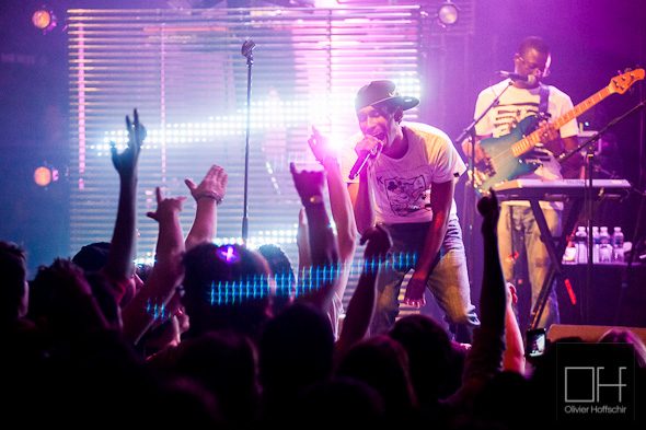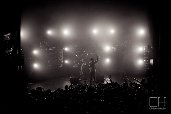 Les morceaux sont réadaptés à la formation sur scène : pas de coeurs, pas de cuivre, mais qu’importe nos musiciens s’en passe très bien et nous offre des instrus puissantes, à base de rock bien heavy ou d’electro bien dark (passage Dubstep sortie de nulle part, rifs basse-guitare à la limite du métal, coeurs à la Justice sur « Rain or Shine »).