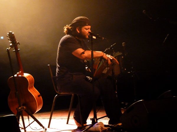 Declan ouvre les festivités! Artiste que j’ai découvert sur myspace et aussi sur la BO du film L.O.L (sublime duo avec Maidi Roth – Not To Love You) avec une carrure de rugbyman, mais qui se rapproche plus du nounours que de la brute épaisse dès qu’il ouvre la bouche. Il débute devant nous, à capella, pieds nus, comme ancrés dans le sol. Se dégage alors de ce corps une émotion d’une justesse inouïe. Tout chez lui est ‘raw’: son allure, sa voix, son énergie. Avec pour instrument une seule guitare ou un instrument traditionnel Indien (une de ses trouvailles lors de ses voyages parait-il!), il est parfois aussi accompagné de Guillaume, au piano, qu’il a repéré sur youtube nous dit-il. L’alchimie entre les 2 hommes opère parfaitement: le piano souligne alors l’émotion qui réside dans ces mélodies. Declan nous présente quelques chansons de son album intitulé A Fire To Scare The Sun, toutes plus belles les unes que les autres (Red Forest, 57 Years) ainsi que des chansons plus anciennes (Apple Tree, Throw Your Arms Around Me). Sa voix superbe va de paire avec une spontanéité rafraîchissante, car dire ‘Fuck’ entre 2 chansons pour détendre l’audience n’a jamais tué personne! Mention spéciale pour Until The Morning Comes. L’irlandais nous quitte comme il est venu, sur la pointe des pieds, à capella. Quelques grammes de finesse dans ce monde de brutes.