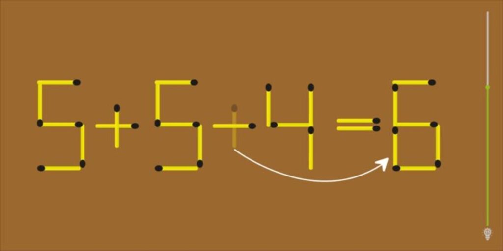 Voici l’énigme : l’équation mathématique 5+5+4=5. À première vue, elle semble incorrecte. Mais, avec un peu de réflexion, vous pourriez être capable de corriger cette erreur en déplaçant une simple allumette. Le but ? Résoudre cette énigme en moins de 20 secondes ! Il ne s’agit pas seulement de calculer, mais d’exercer votre créativité pour comprendre comment une petite modification peut tout changer.