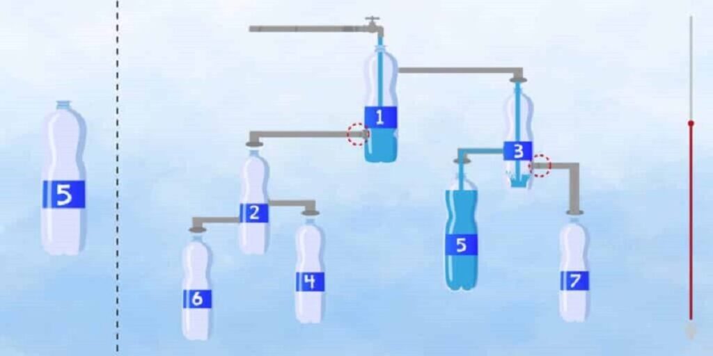 Dans ce défi, l’objectif est de déterminer, parmi plusieurs bouteilles reliées entre elles par des tuyaux, laquelle se remplira en premier. Cela peut sembler complexe au début, mais une fois que vous prenez le temps d’observer et de réfléchir, les choses deviennent beaucoup plus claires.