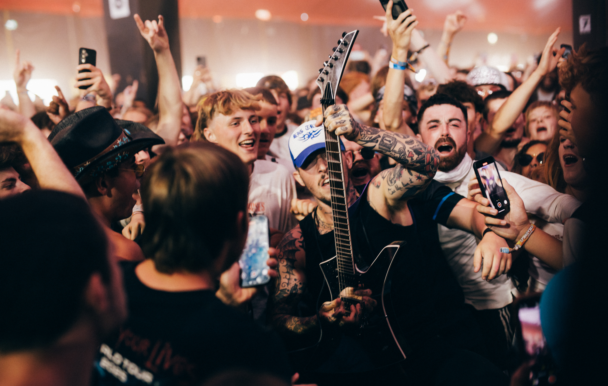 Vincent explained that Soft Play's recent US shows with Kneecap proved a catalyst in their current outspokenness: “We took too long to come to the forefront, but then going on tour with Kneecap in the US and watching three of the most eloquent people I've ever met talk about it onstage fearlessly and educate us, and show that standing up for people that don't have a voice is so purposeful… The media makes you believe we're gonna lose everything if we do it, as well, Quand la réalité est que les gens de la foule sont là avec vous.