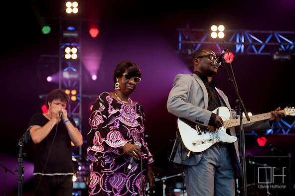 Après une rapide hésitation, je me dis quand même que même si je les ai déjà vus sur scène, c’est toujours une vraie fête. Et je ne me suis pas trompée. En guest, nos deux maliens, toujours aussi heureux d’être sur scène, ont invité leur ami Bertrand Cantat. Déjà présent sur leur album, Cantat est apparu en toute simplicité à leur côté en tant que choriste, et a semblé s’amuser comme un véritable gamin. La seule présence du chanteur a soulevé la foule qui l’a tout de suite ovationné. Une étape pleine de chaleur et d’Afrique rayonnante, de mélange, idéal pour débuter le voyage des Eurocks.