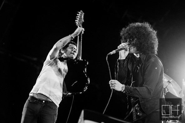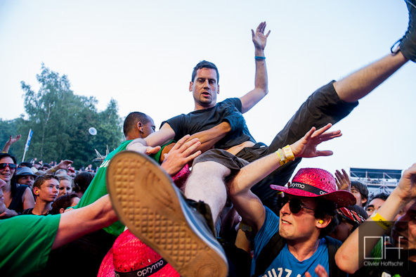 « Vite, vite, Vaness’, ils sont déjà sur la scène » crie une jeune groupie après m’avoir allègrement bousculé… bon, ça résume un peu le passage de The Kooks… Beaucoup de jeunes filles qui hurlent et surtout un groupe qui déménage bien et plutôt mignon. C’est sexy en diable… Le groupe sur scène est électrique et déverse un rock « léché », bien balancé. La voix et la posture est assurée, The Kooks est bel bien rentré dans la cour des grands devant un parterre de groupies complètement déchainées… malgré tout cela, personnellement, je trouve tout cela un peu trop propret.