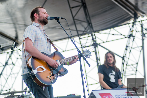 Je me rends rapidement à la Plage (j’avoue, c’est un peu ma scène favorite !) pour découvrir un groupe originaire de Caen, au nom tout aussi improbable que profane. Bref, des jeunes gens plutôt rompus à la scène à qui un festival comme les Eurockéennes ne fait même plus peur. Aussitôt, ils envoient un rock mélodique et savamment orchestré, s’autorisant quelques fantaisies et délires musicaux. Leur univers pop rock est entrainant et incisif à l’instar du titre « Pimp » que je trouve vraiment séduisant. Le jeune public de la Plage ne s’y trompe pas, le trio se fait plaisir et ça se voit.