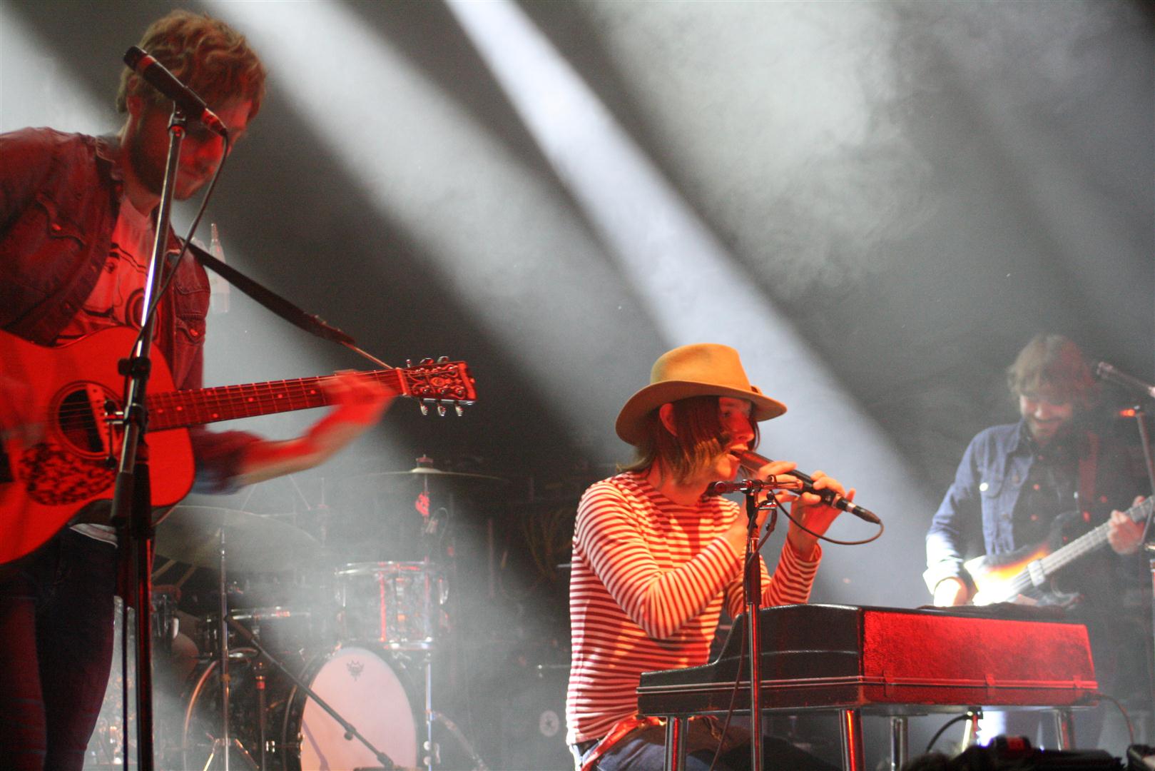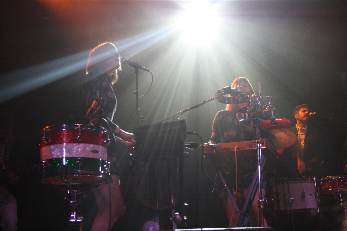 Le groupe se compose de 3 garçons, plutôt discrets et de deux demoiselles à la franges bien découpées et au look très étudié. Positionnées au centre de la scène et se faisant face avec une quasi parfaite symétrie, les deux jeunes filles aux yeux dessinées par un crayon noir façon sixties, monopolisent l’attention. Jeu de scène mais aussi présence vocale centrale, Jess Wolfe and Holly Laessig (ne me demandez pas qui est qui !!!) forment le noyau dur de ce quintet, l’atout maître. Tout autour d’elles, claviers et percussions, et c’est tambourin à la main, qu’elles donnent le rythme.