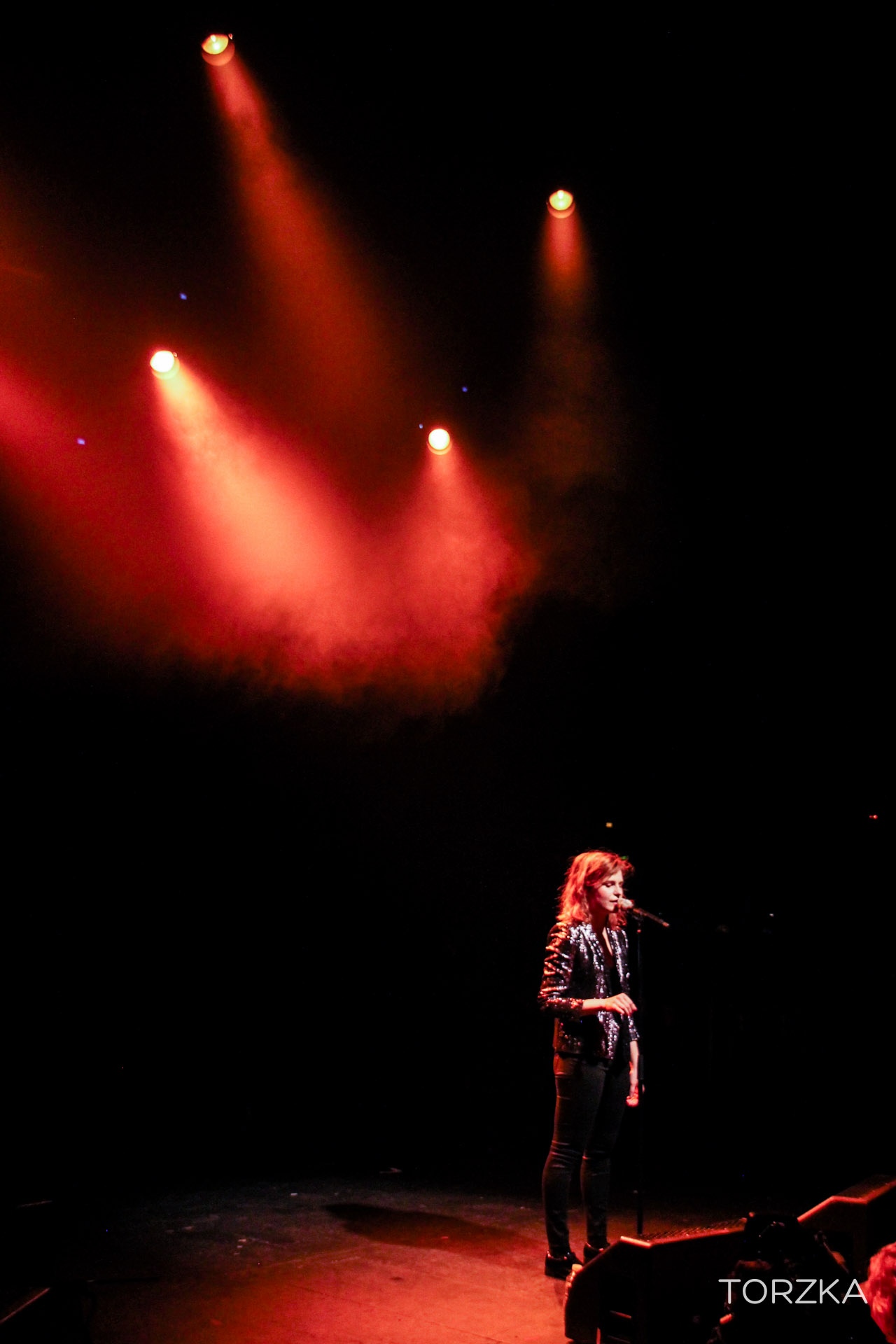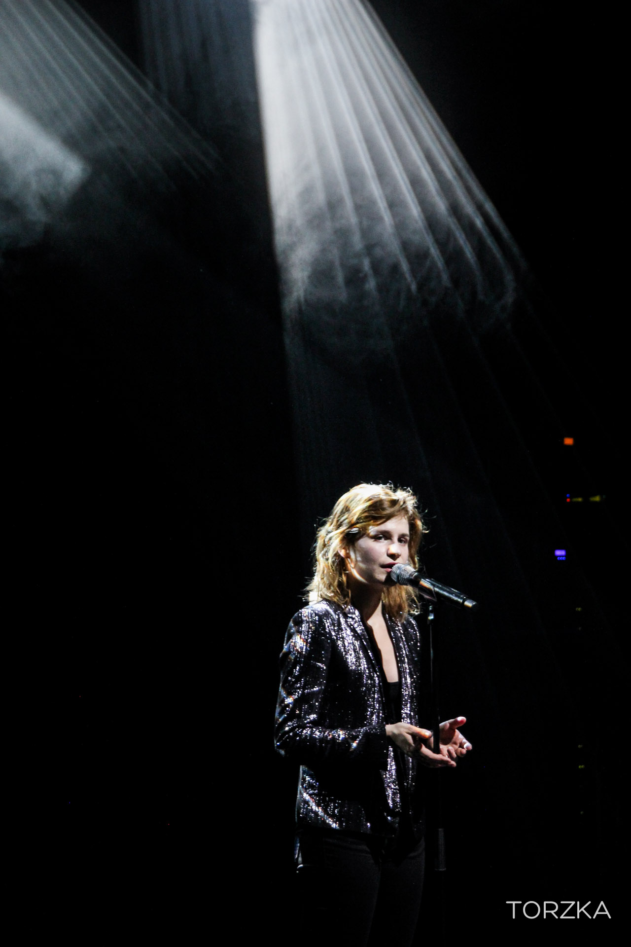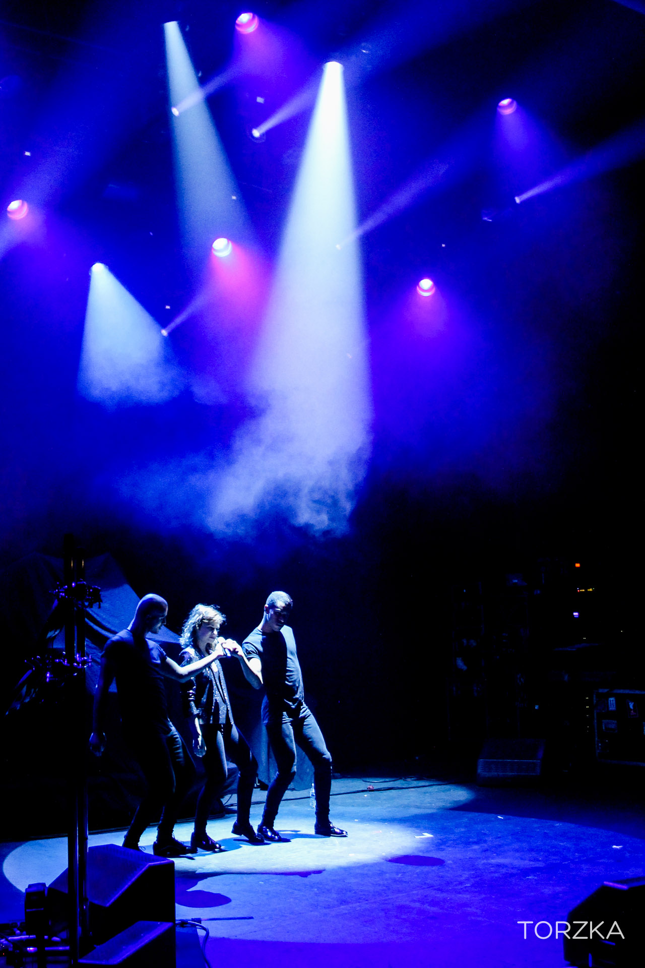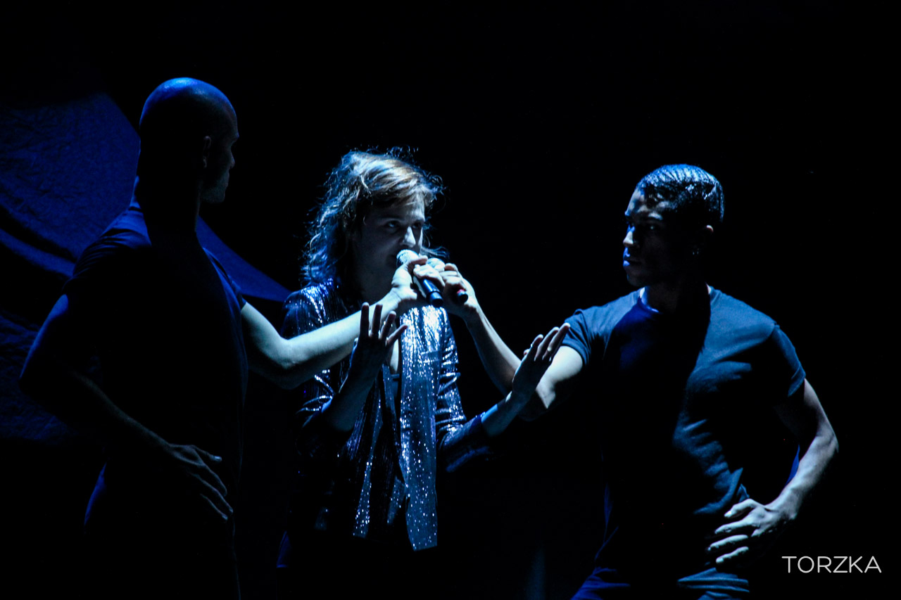 2ème artiste à monter sur la scène ce soir : Christine & The Queens, qu’on aime beaucoup ici chez ZN. Elle fait son entrée accompagnée de ses danseurs sur une chorégraphie millimétrée. Veste à paillette, chaussures vernies, soin pour l’esthétisme, on reconnait aisément l’influence d’un certain Michael Jackson pour le jeu de scène et certains mimiques. Musicalement, elle appelle ça de la freakpop, de la pop avec une peu de fantaisie et le public adhère. « Nuit 17 à 52 » déclenche les « Aouwwww » du public, qui reconnait et reprendra la chanson. Héloïse (la chanteuse de Christine & The Queens) n’a pas l’air de réaliser son succès grandissant et totalement mérité. Il y a pourtant déjà un talent immense et une personnalité qui la place dans une catégorie à part dans la chanson française (si ce n’est internationnale, soyons fou !). Nous, on est déjà impatient de découvrir son album.