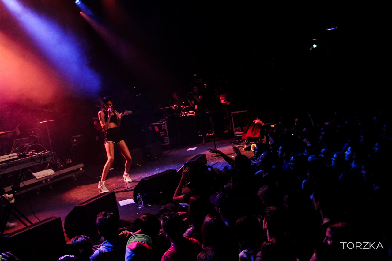 Décidément les artistes Danois auront bien représenté en 2013. Un peu plus encore avec Mø qui agite la blogosphère et les mag spécialisés ces derniers temps. Le public français la découvre pour la 1ère fois sur scène. Karen Marie Ørsted (de son vrai nom) livre un show énergique. Intenable sur scène, elle n’arrête pas de bouger. Elle saute d’un bout à l’autre, chevauche les enceintes, se roule par terre. On a l’impression d’assister à une séance de gym. Pas très sexy mais efficace ! Musicalement la palette est assez large : electro pop avec des influences Hip Hop et R’n’B. 1ère à jouer ce soir, le public parisien n’était pas prêt à se réveiller aussi vite. Son premier album est prévu pour 2014.