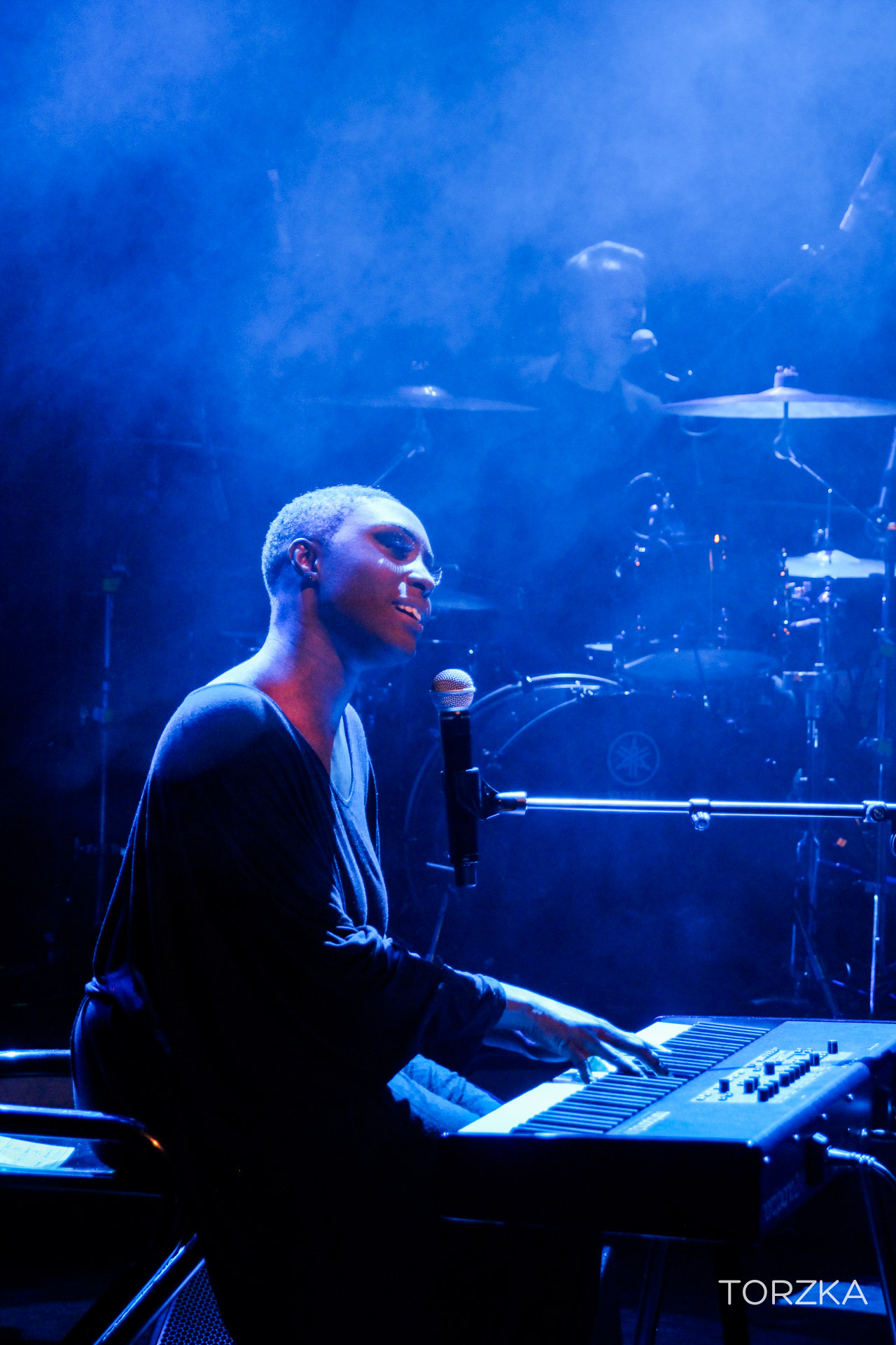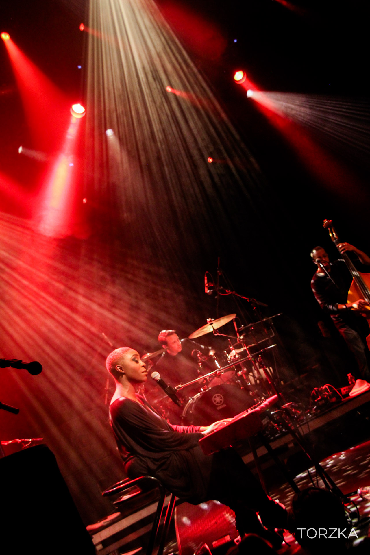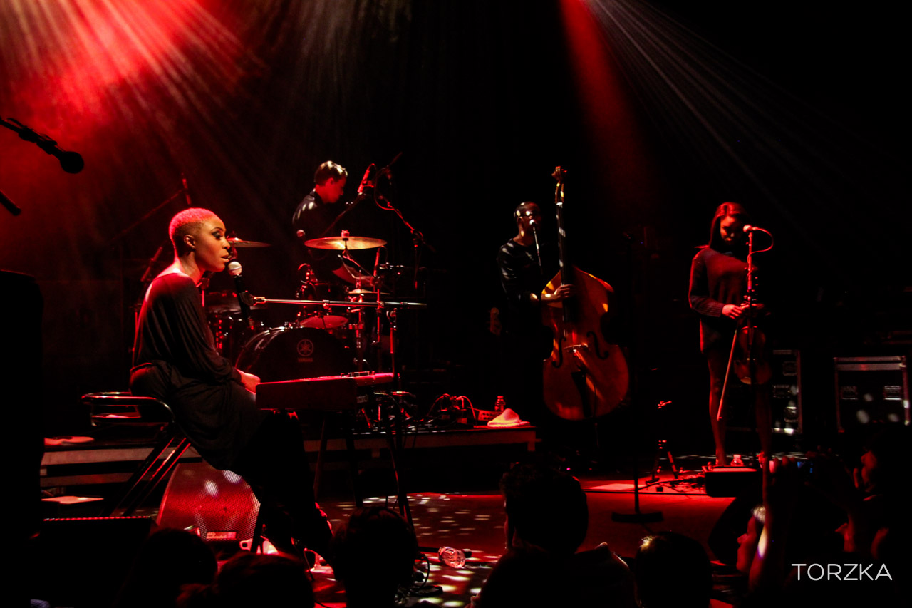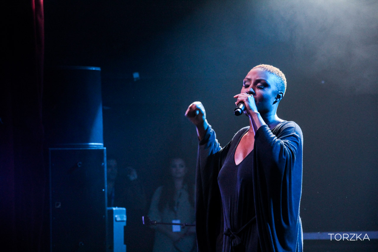 Changement d’ambiance après le show énergique des Alunageorge avec la performance de Laura Mvula. L’Anglaise revient enchanter le public parisien avec sa voix et ses musiciens. Considérée par certains comme la révélation soul de l’année, les qualificatifs ne manquent pas à son sujet pour décrire son chant et sa musique : beau, magnifique, merveilleux, moment de grâce, enchantement, etc. On peut en rajouter encore, mais le mieux c’est de l’écoute et de se laisser porter. Il y aura bien sûr « She » mais aussi « Is There Anybody Out There » dont elle a pris l’habitude d’enchainer avec une reprise de « One Love » de Bob Marley. Lumineux.
