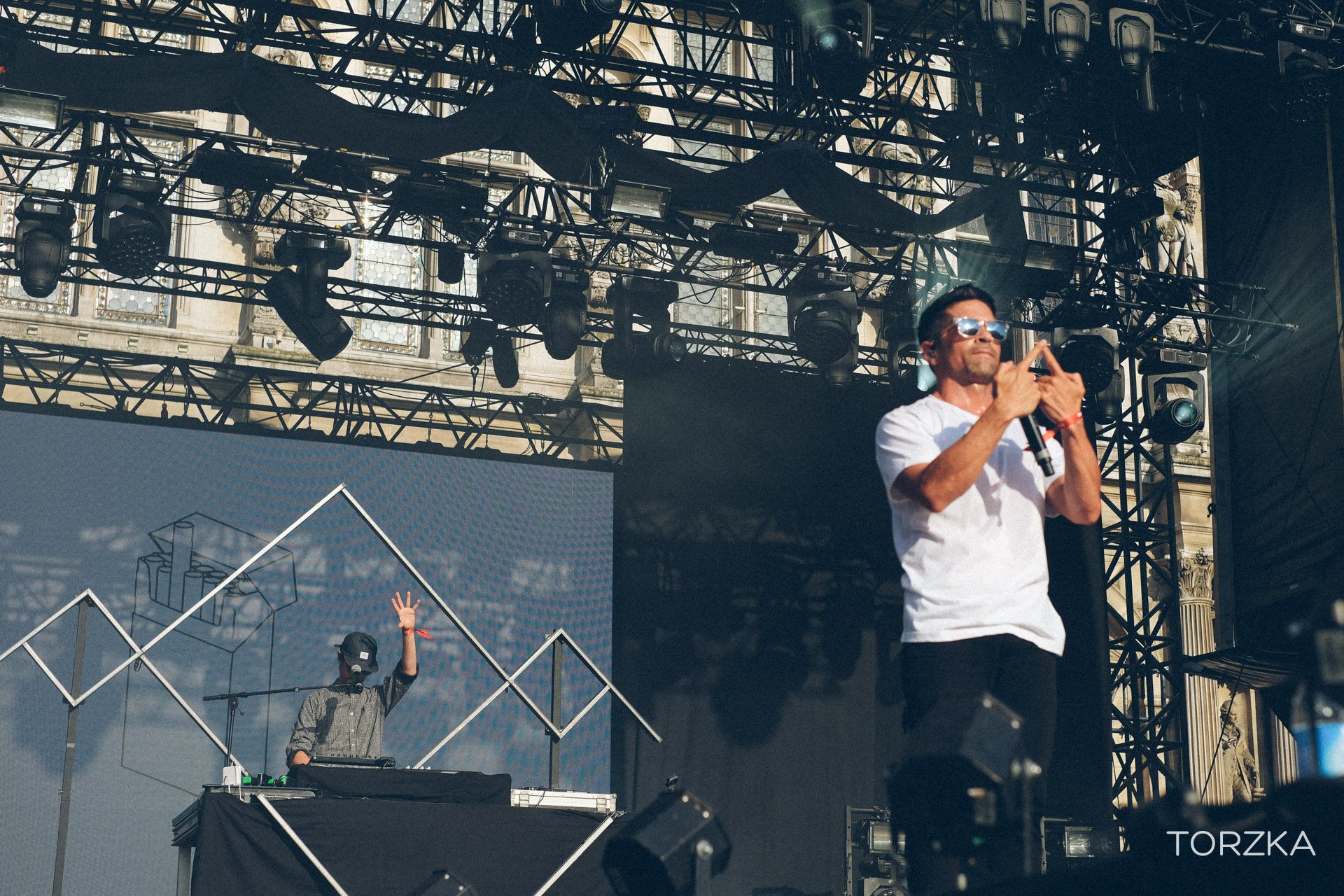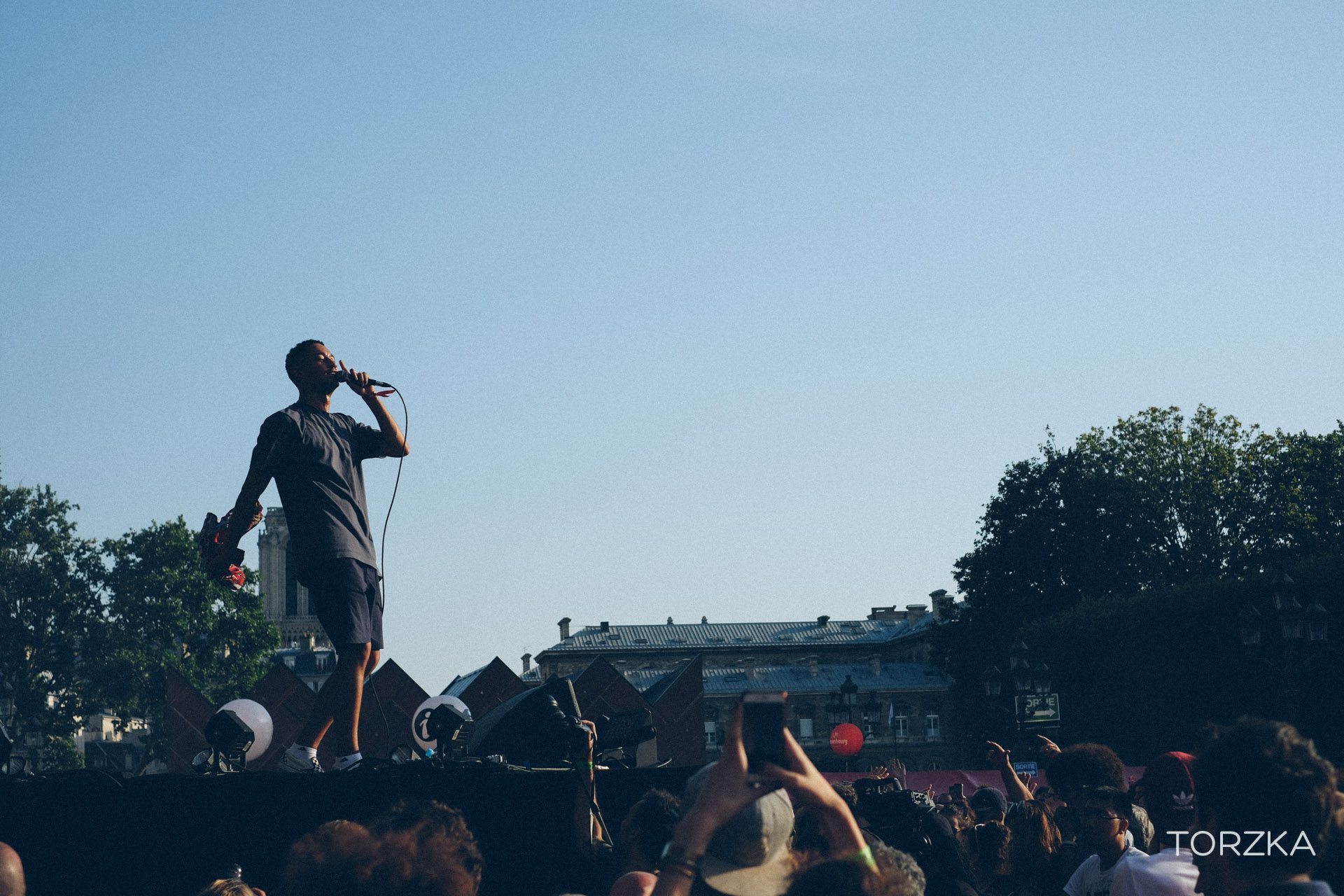Qui aurait prédit, il y a deux ans que le duo Paradis, pop frenchy ferait danser le parvis du Fnac live. Un look un peu vintage, des sonorités synthétiques, Paradis, c’est un plaisir « Instantané » et un rien « Décalé ». Depuis ses débuts, le duo s’est affirmé, s’est musclé (musicalement et vocalement) et a offert un set festif et rayonnant.