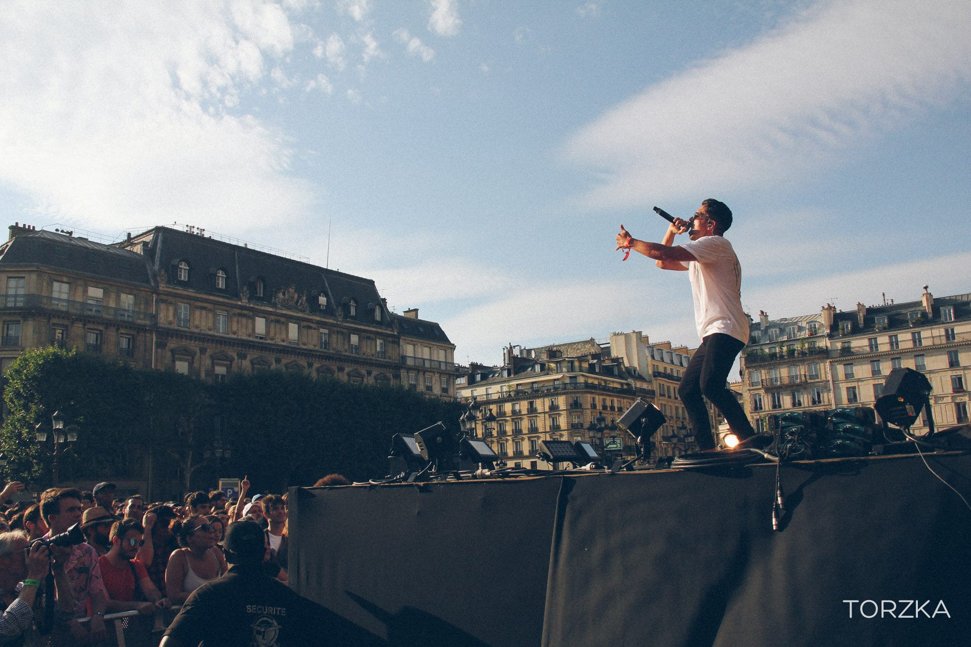 On les attendait un peu au tournant, AlttA a mis le feu à partir de 19h sur le parvis de l’Hôtel de Ville ! Fin d’après-midi ensoleillé, début du week-end, il manquait juste le flow Mr J Medeiros (MC des Procussions) et les beats de 20Syl (Hocus Pocus, C2C) pour parfaire le cocktail et lancer les hostilités. Survolté, le MC a fait balancer les bras et secouer les corps des parisiens sur des morceaux qui alternent hip-hop « boom-bap » ou plus électro comme « Touch Down » qu’il a habitude de foiré (comme il le dit) sur scène. Ce soir, c’était une réussite totale !