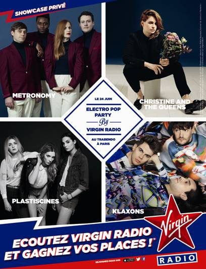 ZikNation et Virgin Radio t’offre la chance de gagner deux places pour l’« Electro Pop Party » le 24 juin au Trabendo, un concert privé qui réunira un line-up de folie : Metronomy, Christine and The Queens, Plastiscines et les Klaxons.