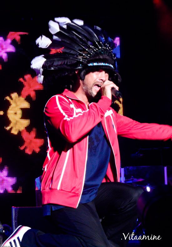 Jamiroquai. Mhh… Il fait nuit désormais sur les arènes, les musiciens sont en place, il ne manque plus que l’Apache pour mettre le feu aux poudres.