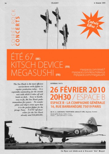 On vous en a déjà parlé, on vous offre meme un titre d’eux (si si dans la colone de droite)! Kitsch Device part d’une chanson au ukulélé, « From Now On You Mean Nothing But A Song To Me » qui rencontre un vieux micro harmonica au design délicieusement passé. Une série de morceaux lo-fi enregistrés dans l’urgence avec des moyens rudimentaires naissent en quelques jours… Début 2008, le groupe se constitue autours de ces morceaux. Le ton change quelque peu : plus d’énergie, plus de guitares, plus de rock. Mais toujours une volonté de faire vite, vite, vite – quitte à laisser des morceaux inachevés, suspendus dans leur progression, quitte à être incohérents, hétérogènes… Peu importe. Le premier EP s’appelle Think Fast, Do Things, Vanish.