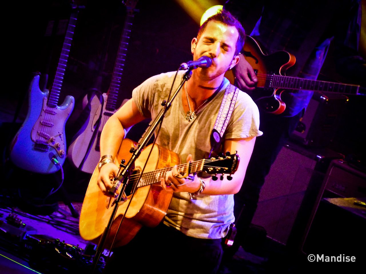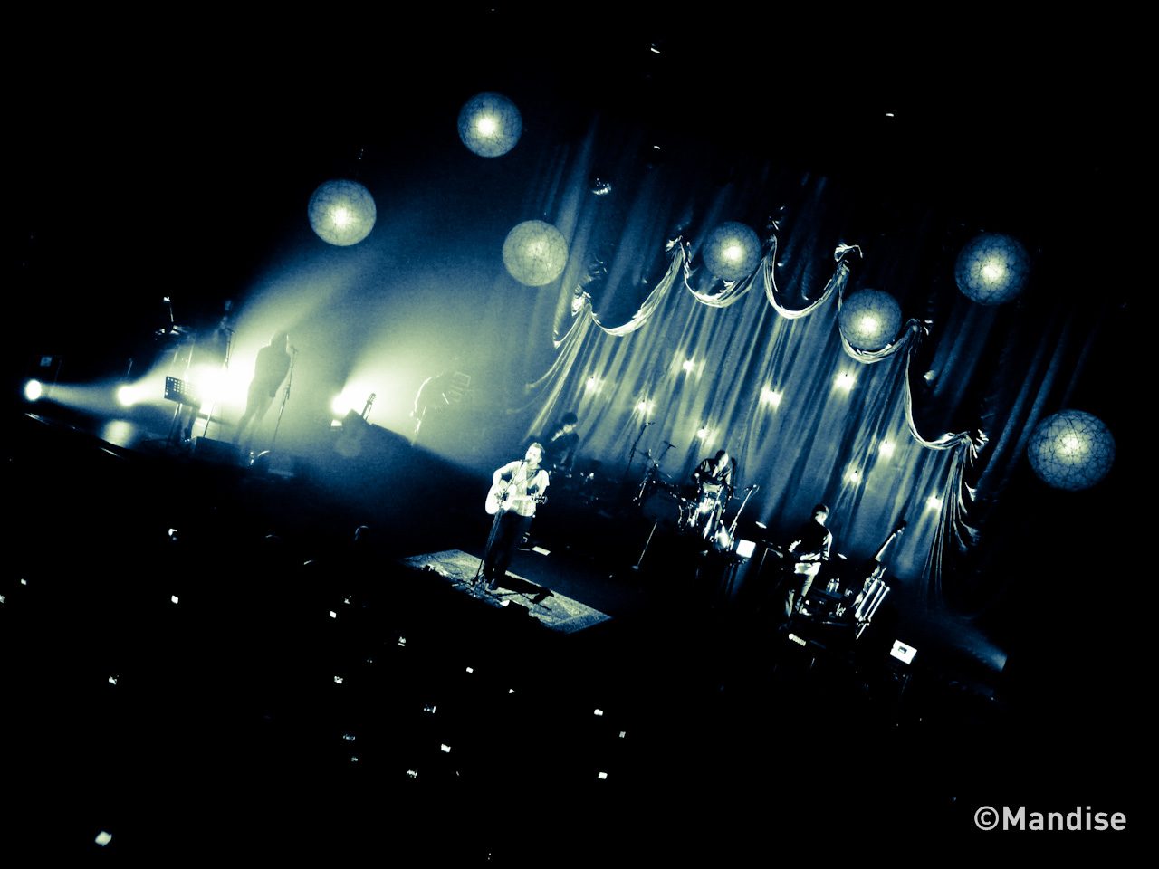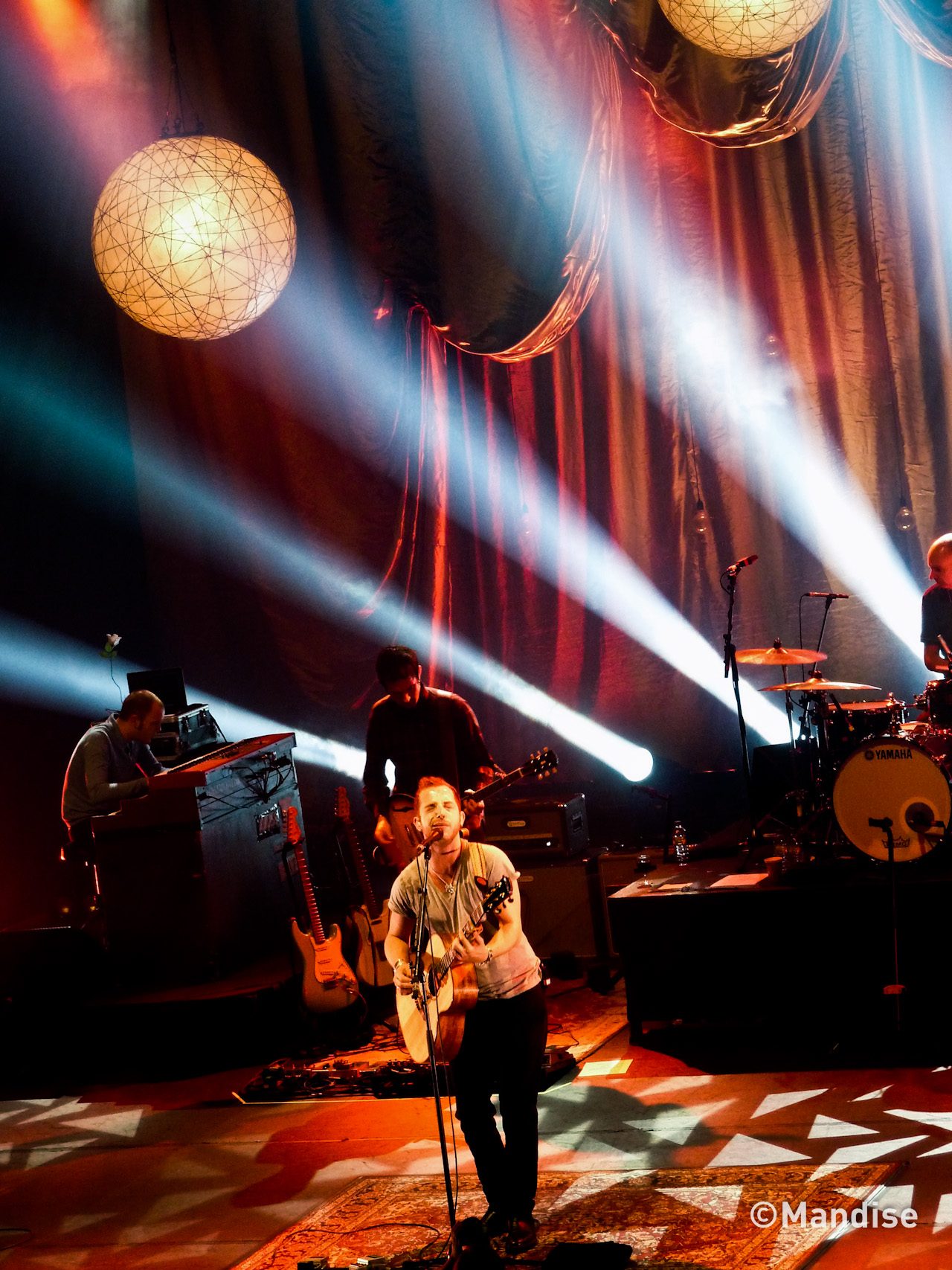 Une petite demi-heure plus tard apparaissait enfin James Morrison, l’Homme de la situation. On s’était déjà vus lui et moi dans cette salle mythique, il y a 2/3 ans, donc autant vous dire que ces retrouvailles étaient fort attendues. Le décor, fait de grands rideaux drapés et de gros lampions suspendus, rend l’atmosphère chaleureuse et cosy. Il ne manque plus que la fumée et l’éclairage tamisé pour se croire dans un lounge de NYC.
