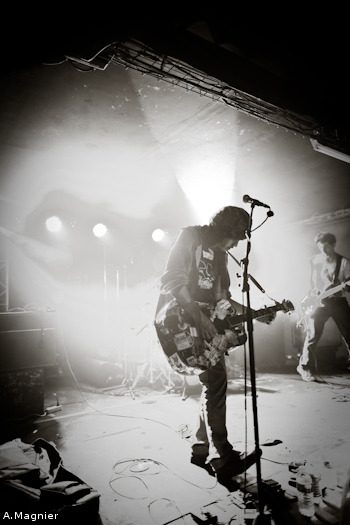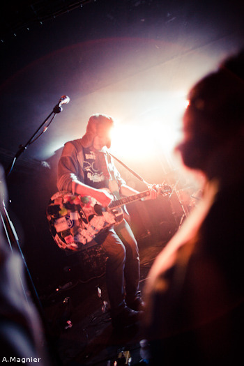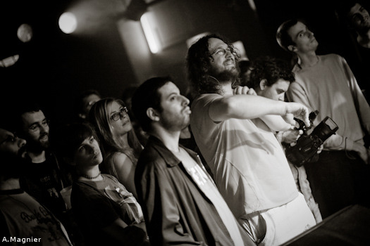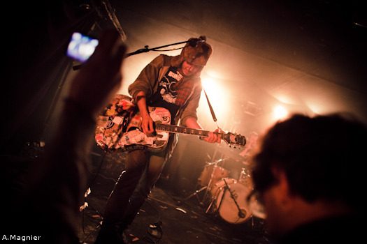 A 21h les Bundles, amputés donc de Kimya Dawson, montent sur scène. Malgré cet effectif diminué, les New-Yorkais s’en tirent avec plus que les honneurs : un excellent concert, qui laisse entendre, entre les grattes folk punk de Jeffrey, entre les basses sauvages de Jack et les batteries furieuses d’Anders, les harmonies déglinguées des frangins ; et particulièrement le flow furieux du magique et drôle aîné – qui nous expose par ailleurs au fil du concert l’histoire des super-groupes, reprises à l’appui pour illustration, ainsi que l’histoire de la Rome Antique, comics hand-made en main. Parce que – oui – Jeffrey est aussi un dessinateur / performeur précieux.