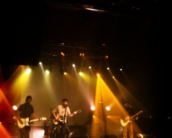 2. Black Lips. On tourne au Jack Daniels sur scène et on envoie la sauce d’emblée dans une salle déjà (c’est rien de le dire en l’absence de clim) surchauffée. La Machine lorsqu’elle monte un peu dans les tours est une fournaise. Les californiens aux grattes so british enchaînent donc avec un aplomb féroce leurs titres, rendant dingue le teenage fanclub à ses pieds, lequel est lui aussi pas mal monté dans les tours depuis le début tardif de la soirée (ouverture des portes à 22h30) et n’a de cesse de grimper sur scène (seul ou à plusieurs), à s’inviter au micro, voire à chopper des bouteilles qui traînent sur scène – ce qui vaut pas mal frictions (joli kick du bassiste / chanteur des Black Lips, pas décontenancé pour si peu) et autres bousculades de circonstance. Au final : un set compact, généreux, rentre-dedans, qui finit avec la moitié de la fosse sur scène… et les vols de cannettes.
