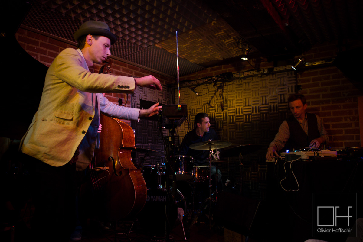 La formation atypique propose un jazz moderne, teinté de hip-hop et d’electro peace. Contrebasse, batterie à la rythmique, piano posent les base les plus classiques, complétés par les platines de Jake Wittlin qui s’amuse à scratcher de vieux sample ou des enregistrements faits au préalable.