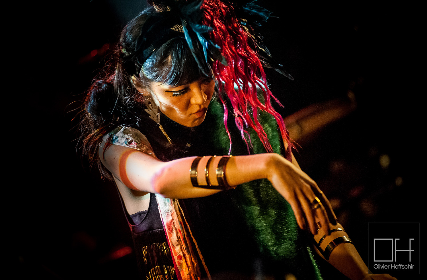 Le concert à la Maroquinerie venait ponctuer la sortie de « Kodama » (son premier album solo si je ne m’abuse). Je ne savais guère à quoi m’attendre ce soir-là, l’album me plaisait bien, mais la transposition sur scène relevait du quitte ou double. J’avais un peu peur de me retrouver devant une chanteuse flutiste sur scène qui envoie des boucles son et joue toute seule par dessus.