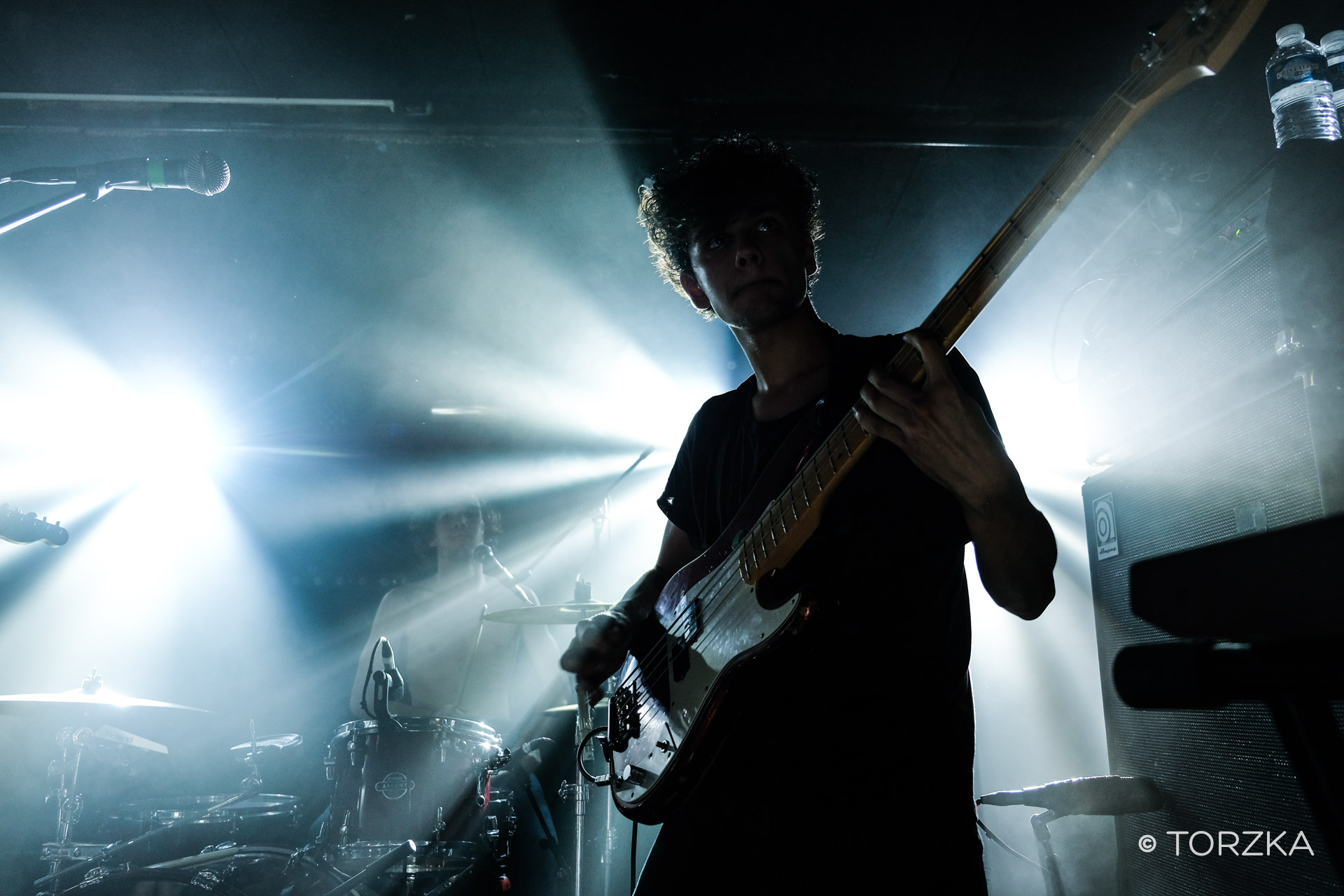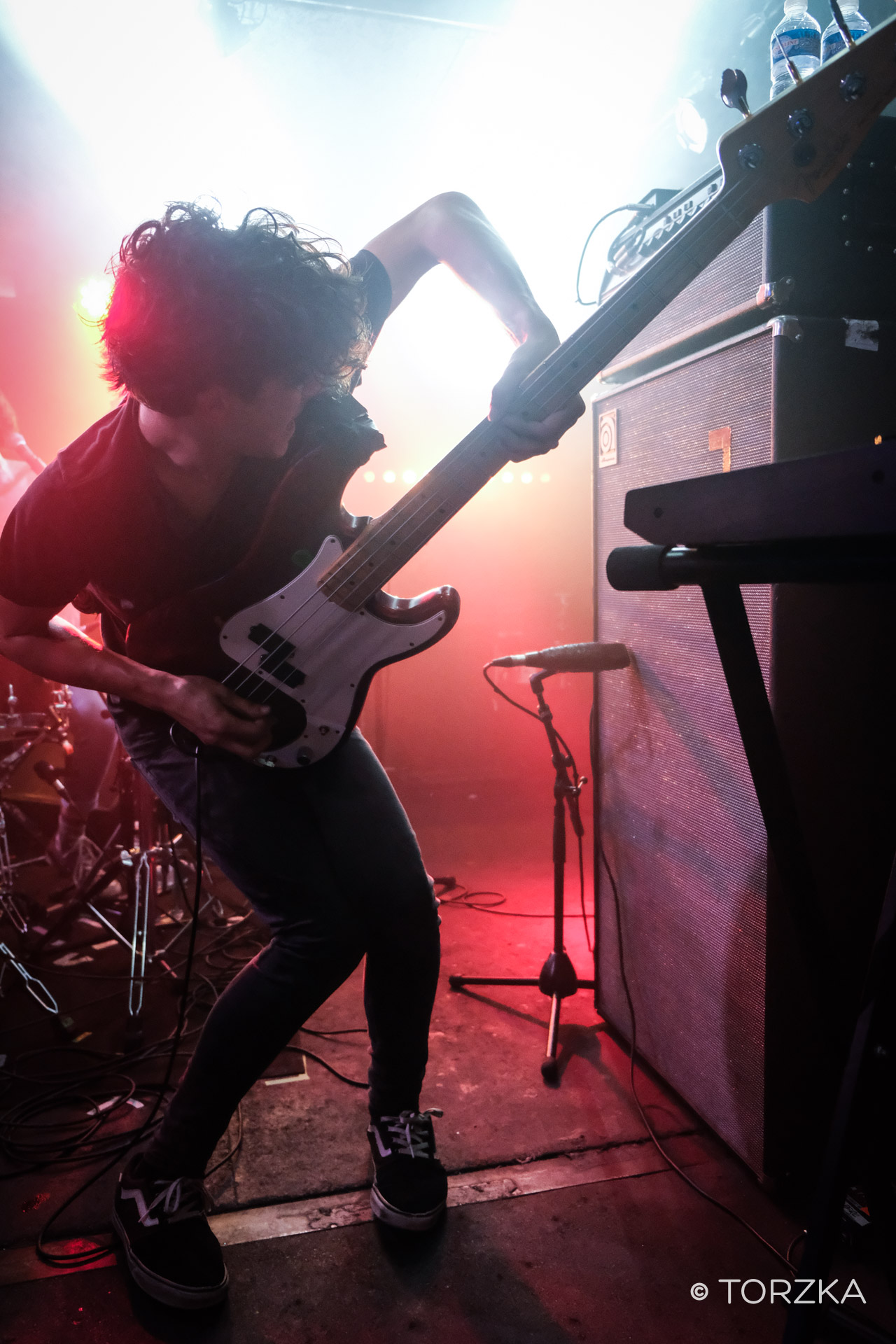 Deuxième groupe à monter sur scène : Lysistrata, que je ne connaissais absolument pas et que Gene était curieuse de voir en live. Ils sont trois, ils sont français et totalement décomplexés. Adeptes d’une musique majoritairement instrumental, leur son navigue entre post-rock et noise. Les drums et la bass lourde répondent à une guitare qui se montre parfois plus délicate. Mais ne vous y trompez pas, ça envoie sur scène. Les trois compères originaires de Saintes exultent en live. C’était un peu l’explosion sur scène. Pas évident de les photographier tellement les mecs sautent dans tous les sens. Ah et j’ai oublié de vous dire qu’ils sont lauréats du Prix Ricard SA Live 2017, et on comprend pourquoi en voyant la débauche d’énergie qui accompagne les décibels.