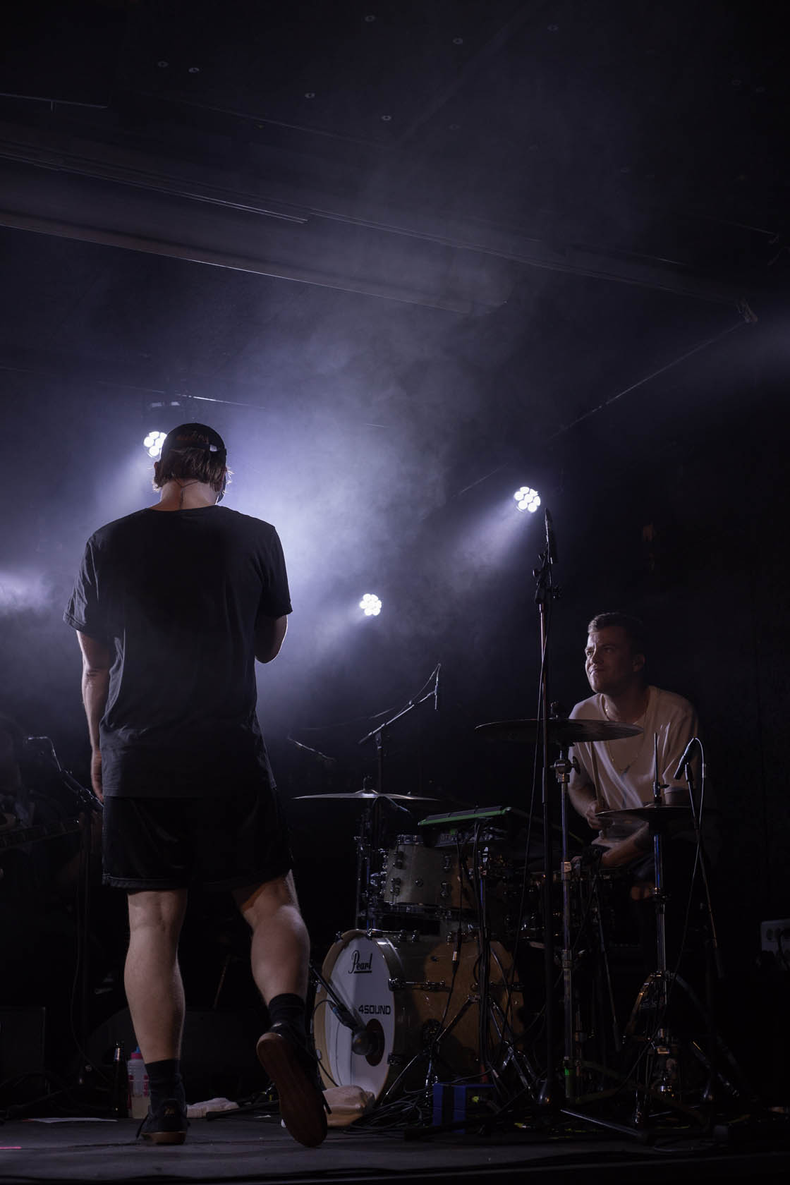 Pour mon troisième jour au MaMa je me laisse moins porter, je sais que je veux voir Phlake. Le groupe danois a été fondé par Mads Bo, le chanteur, et Jonathan Elkaer, le producteur et pianiste. Je me rends donc, le pas décidée, au Backstage by the Mill à 20h15 précise, avant de me faire renvoyer par un « ah non mais c’est pas là l’entrée ». Je fais rapidement demi-tour et entre par une petite entrée cachée sur le côté du O’Sullivan. J’ai raté le début mais l’ambiance semble être déjà là, malgré le peu de personnes présentes, chacun y va de son petit pas de danse.