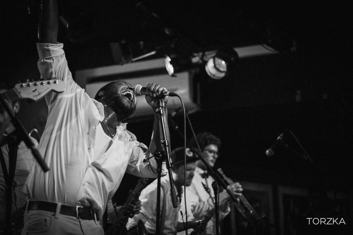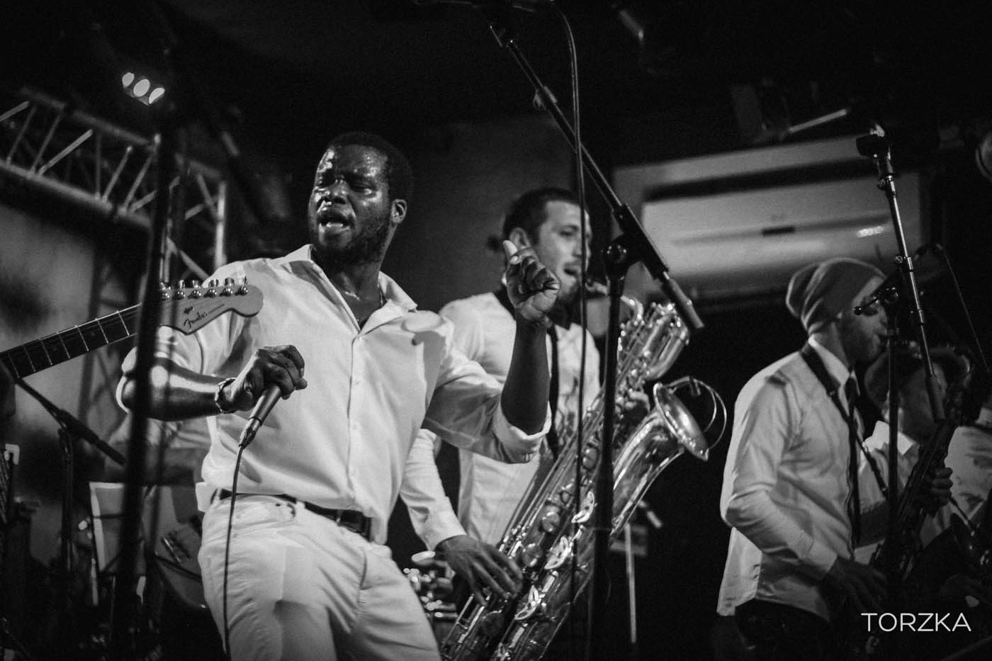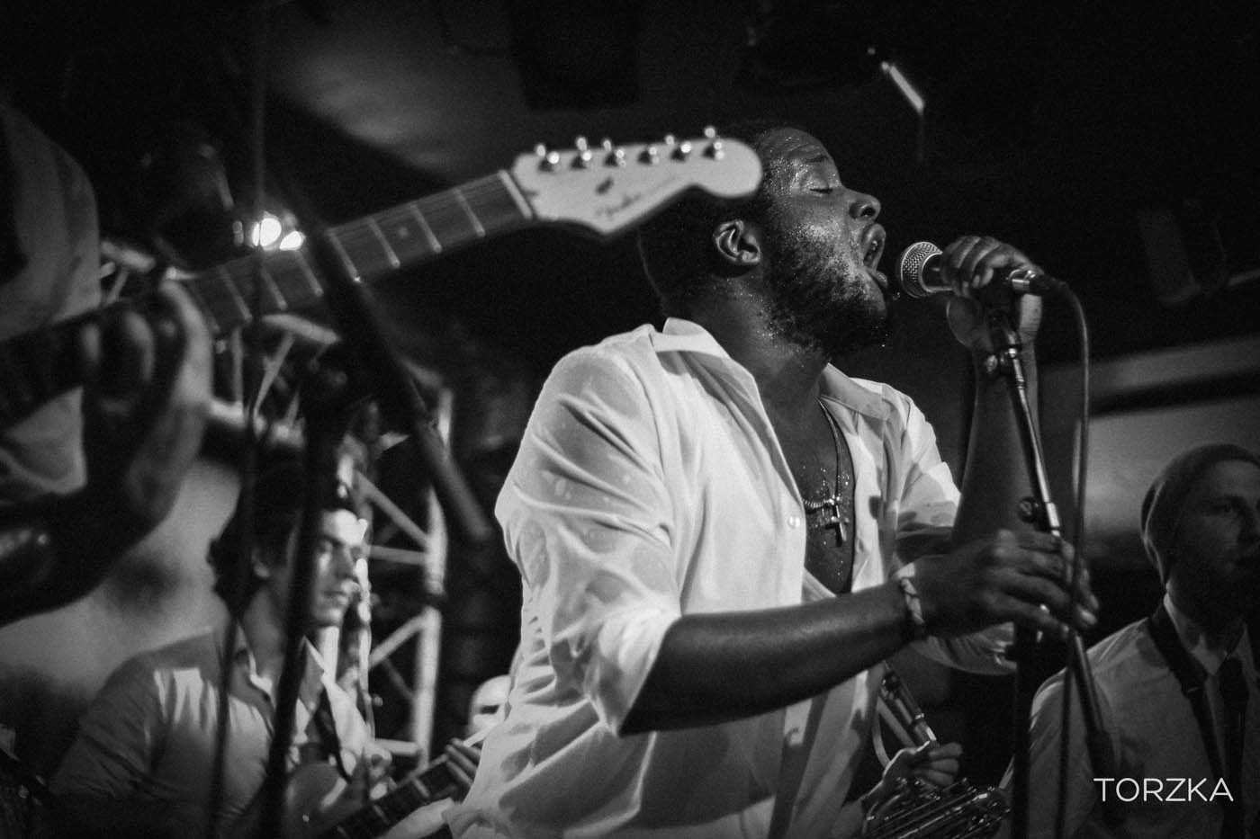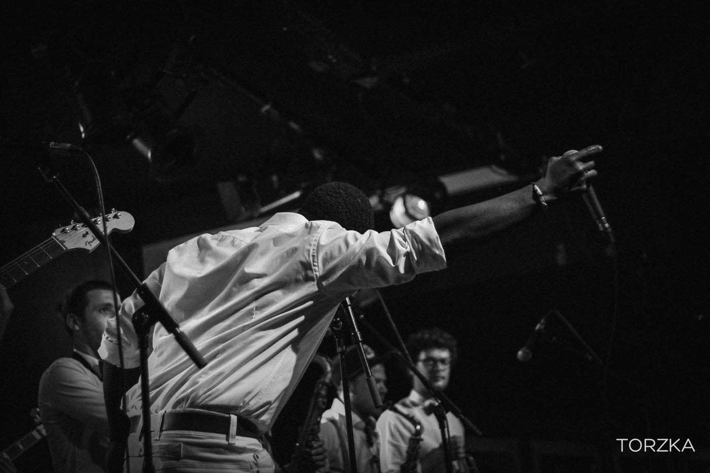 On se demande comment ça va bouger sur scène tellement la scène semble étroite et l’énergie contenue. Ça ne manque pas. Dès les premières notes c’est l’explosion funk / soul ! Wolfgang avec sa voix puissante fait bouger la salle. Dans la fosse, ça se désarticule en rythme par petits groupes, avant que toute la salle se mettent dans le rythme, notamment sur le titre « What To Believe » qui prend toute son ampleur en live. Sur scène tout le groupe danse, Wolfgang, lui, finira torse nu. On est tous trempés par la sueur et ce n’est pas un problème de ventilation !