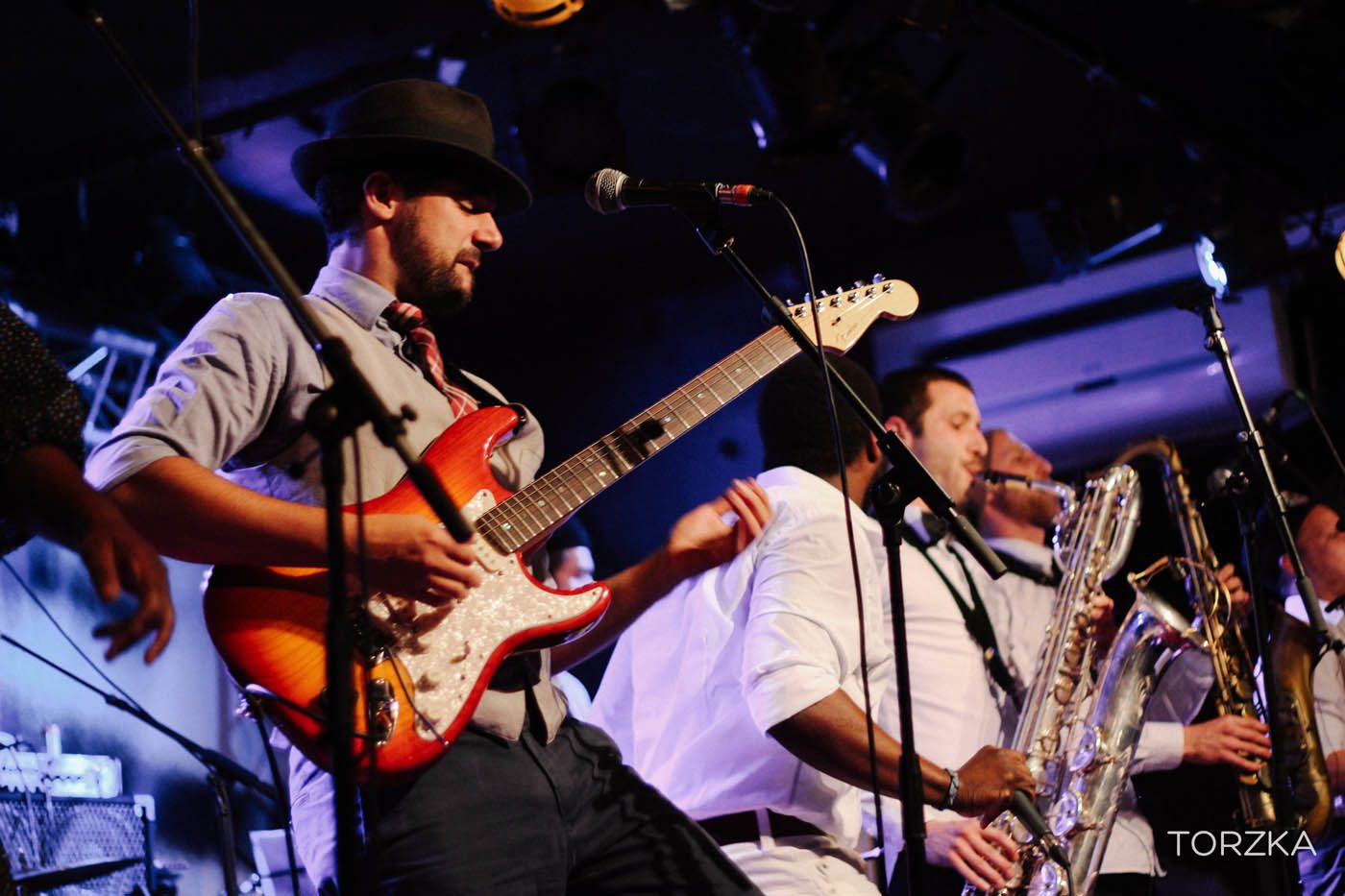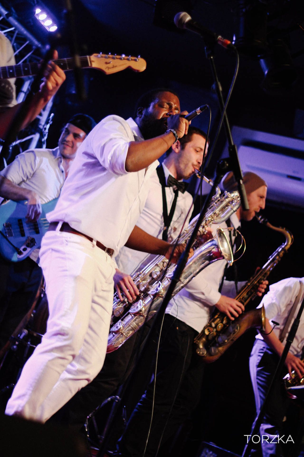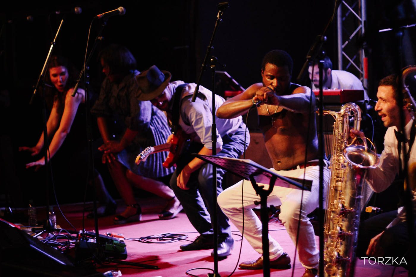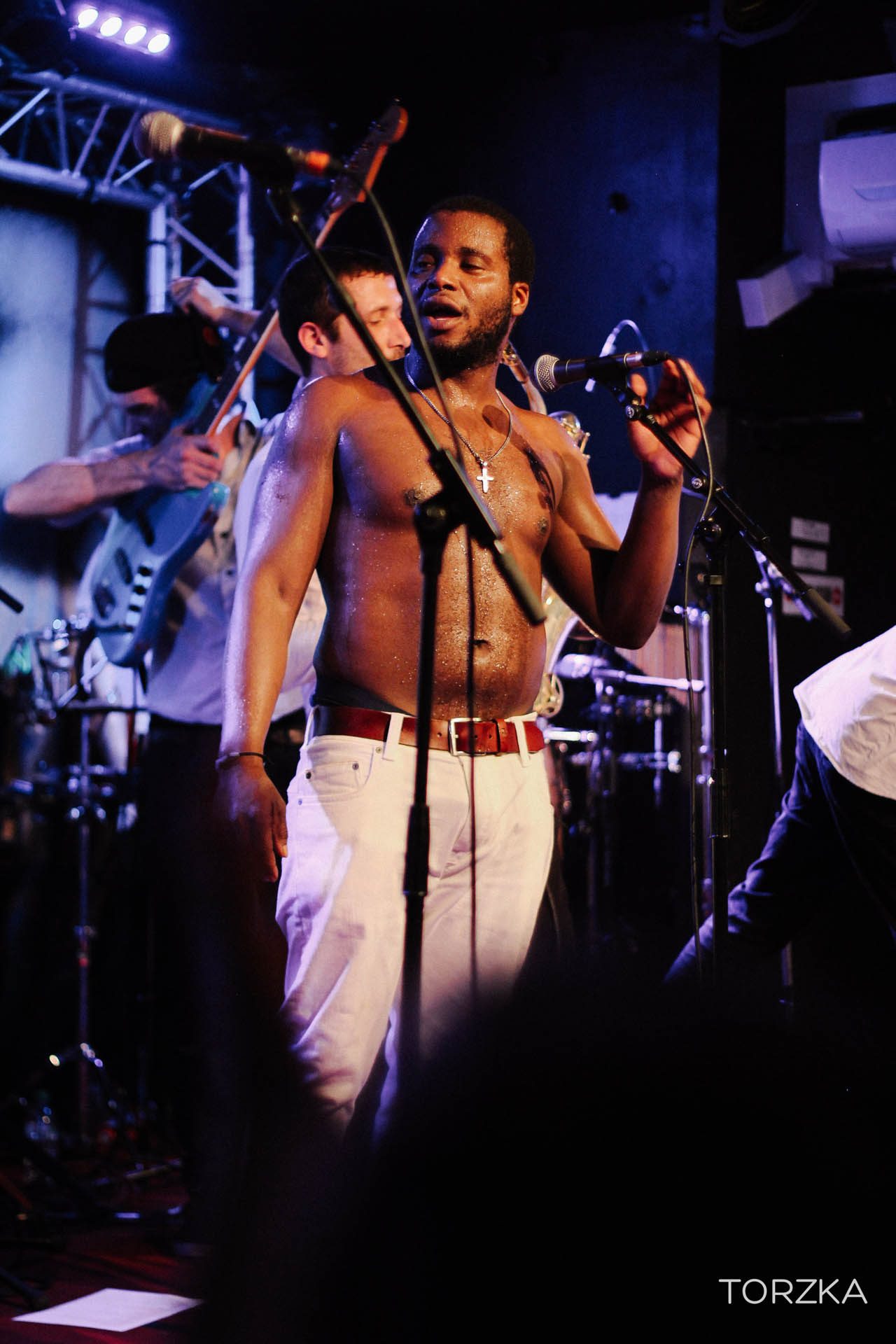 On se demande comment ça va bouger sur scène tellement la scène semble étroite et l’énergie contenue. Ça ne manque pas. Dès les premières notes c’est l’explosion funk / soul ! Wolfgang avec sa voix puissante fait bouger la salle. Dans la fosse, ça se désarticule en rythme par petits groupes, avant que toute la salle se mettent dans le rythme, notamment sur le titre « What To Believe » qui prend toute son ampleur en live. Sur scène tout le groupe danse, Wolfgang, lui, finira torse nu. On est tous trempés par la sueur et ce n’est pas un problème de ventilation !