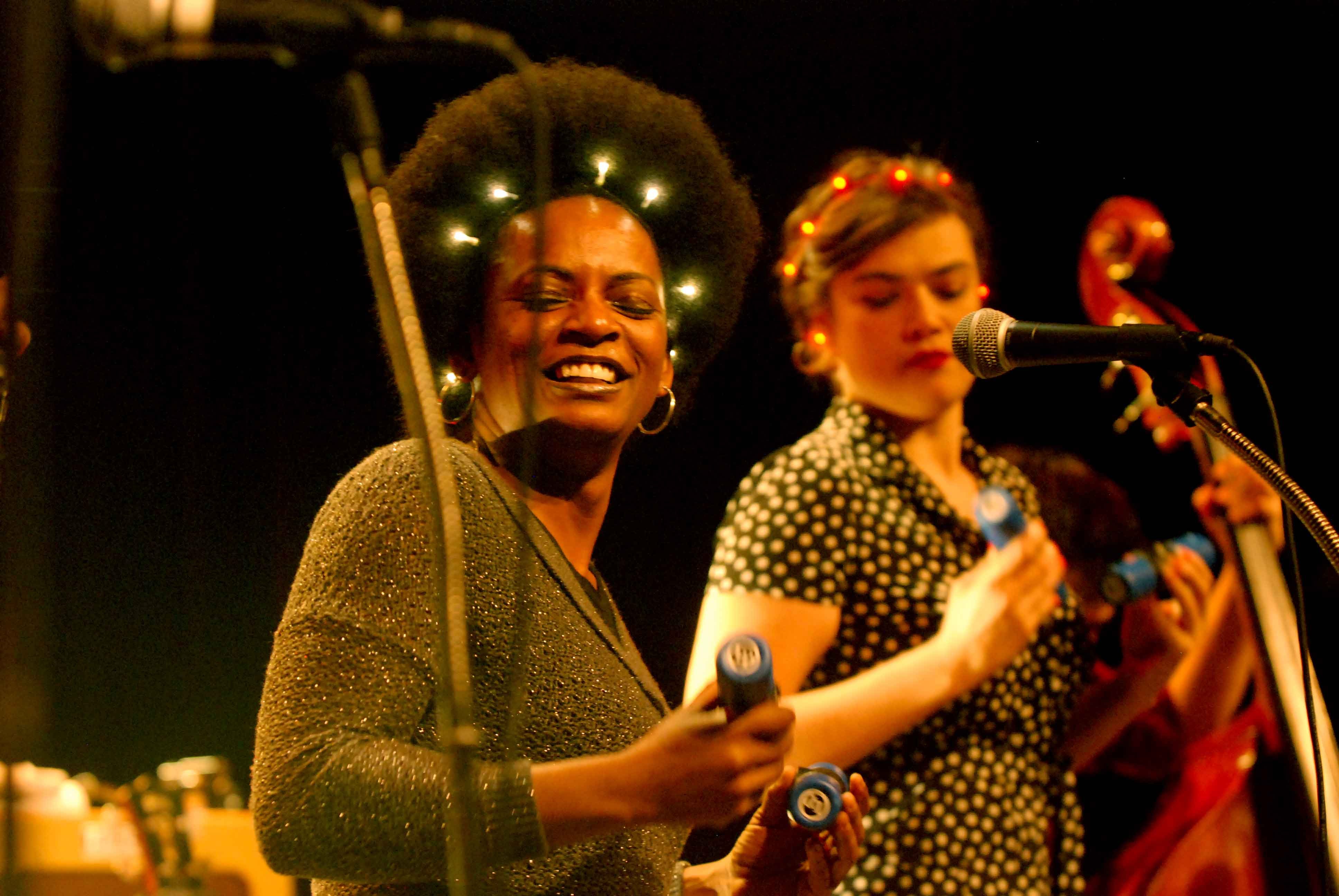 L’univers de la « famille » Moriarty est comparable à celui du magicien d’Oz, à ceci près que leurs vœux ont déjà été exhaussés. Pas de lion peureux ni de robot en quête d’un cœur à l’horizon. Dorothy alias Rosemary Standley alias Rosemary Moriarty peut compter sur l’énergie, la fougue et les sourires contagieux de ses compagnons de route. Elle, est pince-sans-rire (elle sourira à pleine bouche en fin de concert). Ce qui ne l’empêche pas, par quelques mots bien sentis, de réussir à provoquer l’hilarité d’un public conquis. Elle, peut aussi compter sur Christine Salem, personnage encore énigmatique, mais dont la musique est déjà aussi affirmée qu’ haute en couleur.