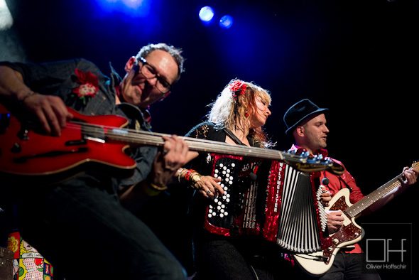 Je boycott donc la fin de Crane Angels pour filer dans la salle 200 et je tombe sur Jools on Wheels en plein délire ! Grosse dose d’énergie scénique pour ce groupe de gipsy rock. Notre public commence doucement à se réveiller.