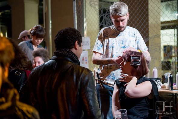 Avec une programmation à des milliers de kilomètres de la hype actuelle la « Nuit Ouf » se tenait ce vendredi au 104. « La contre-culture s’organise » disait le flyer. S’agissait-il de « contre culture » ? Et puis d’ailleurs, c’est quoi ce mot « contre-culture », je m’interroge encore sur son sense profond, le propre de la culture étant son infinie étendu… Toujours est-il qu’organisé, ça l’était. L’intégralité de la grande nef du 104 était réquisitionnée, avec une grande scène, une mini scène café pour le début de soirée, un stand de coiffeurs (!!), des jeux de société étrange (ou des gens se retrouvaient avec des pieds derrières les oreilles), etc… à côté de ça il y avait une salle de massage shiatsu, une cantine bio et une deuxième petite scène dans une autre salle. Bref, de quoi faire pour la nuit !