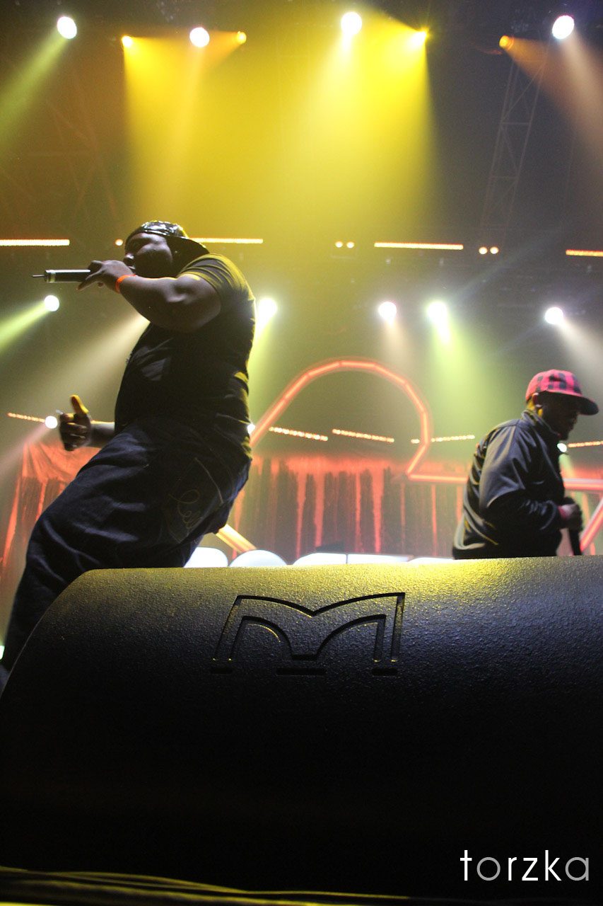 C’est la jolie et gracieuse VV Brown qui ouvre le bal dans un Zenith déjà plein et survolté. De survolté, on passe quasiment au stade d’hystérie quand les présentateurs annoncent l’arrivée de la Sexion d’Assaut. En pleine polémique et annulation de leurs concerts partout en France, ils ont tenu à maintenir leur performance et à venir soutenir une cause qui les tenait à cœur. Le public, des plus enthousiastes, les en remercie et vibre au rythme de « Casquette à l’Envers », « Ils appellent ça » ou encore de « Désolé », repris en chœur comme un véritable hymne par les 6000 bénévoles. Vous avez parlé de polémique ? Seuls les média présents avaient ce mot en bouche… le public a déjà tout oublié.