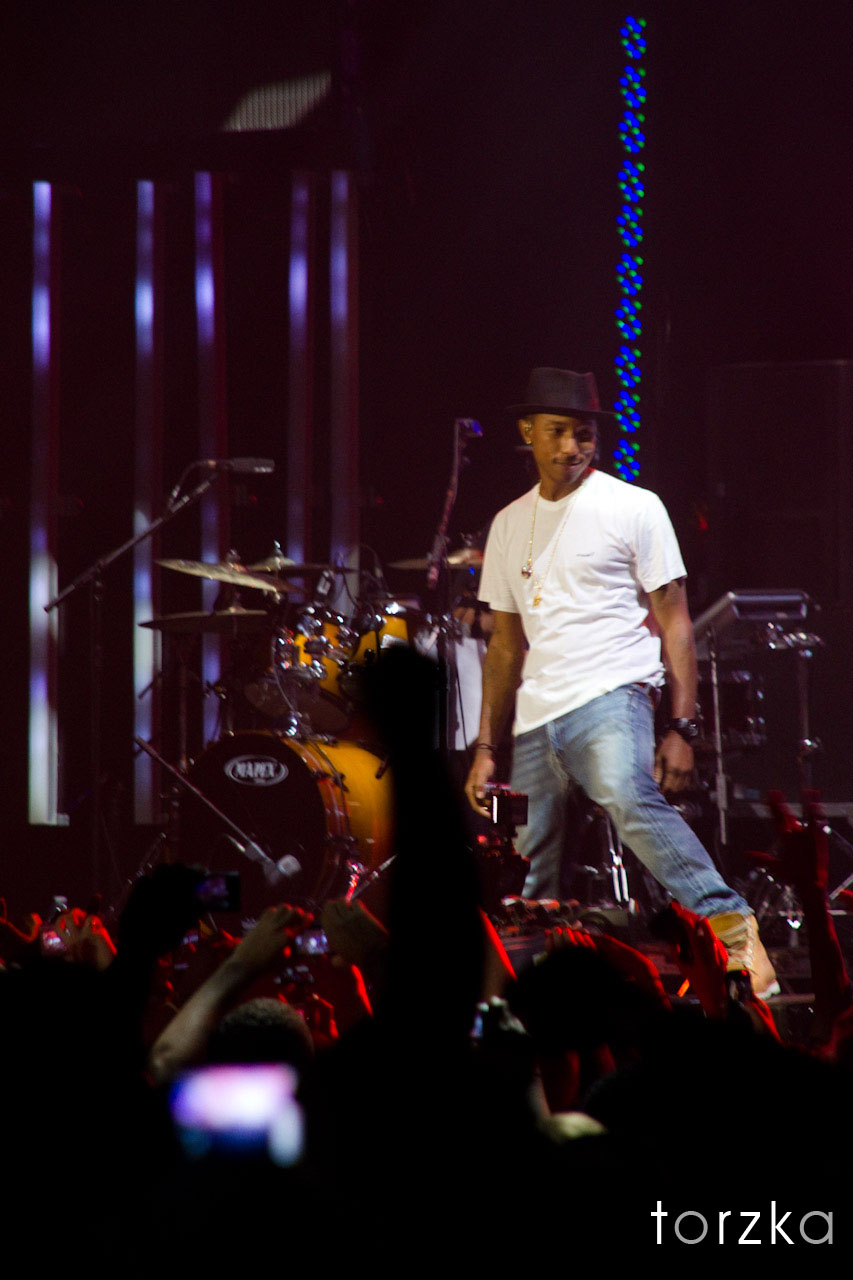 Dernier groupe à se produire pour cette édition parisienne de RockCorps ettête d’affiche de la soirée : N*E*R*D. Le groupe occupe toute la scène avec ses 2 batteries, ses plateformes pour ses danseuses et ses musiciens. Tout de suite ça impose. L’apparition de Pharrell Williams déclenche des cris hystériques mais on commence à avoir l’habitude mais ce soir là, le public aura surtout la chance de découvrir quelques titres du nouvel album comme « Party People », « Hypnotise U » (produit par les Daft Punk) ou encore l’entrainant « Hot’n’Fun ». N*E*R*D reprendra également les très puissants « Rockstar » et « Lapdance » issus de leur premier album pour clôturer la soirée avec une foule en liesse.