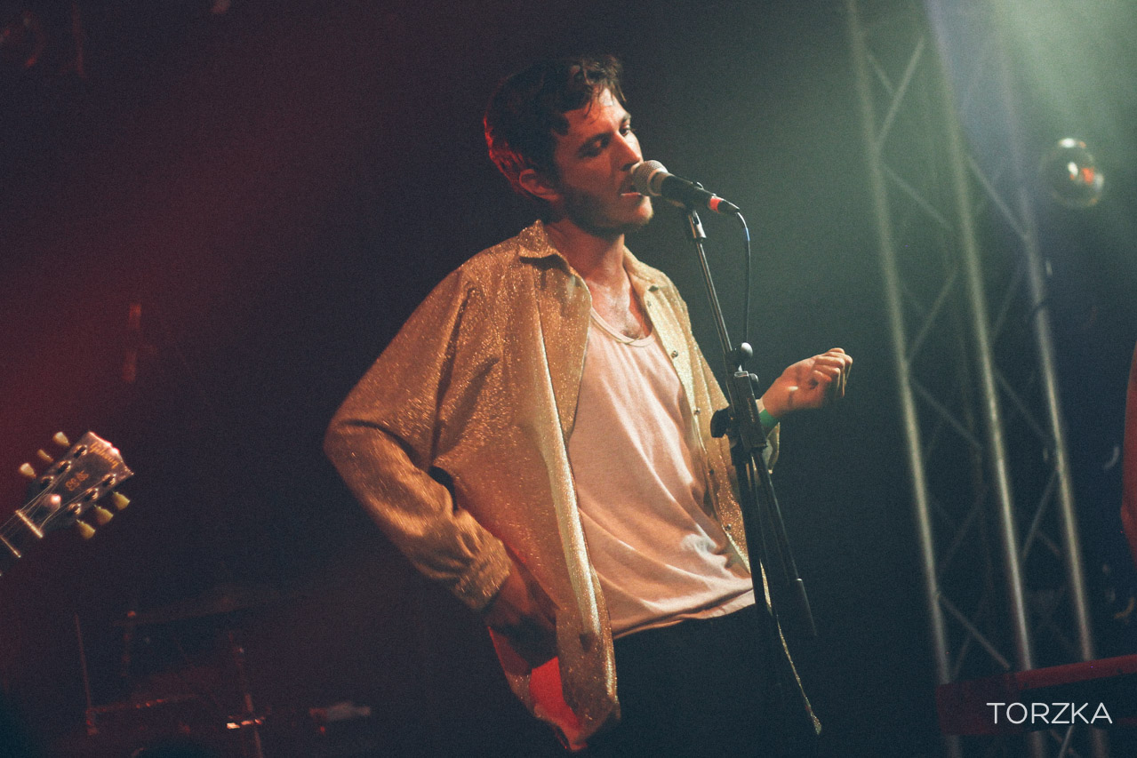20h15. J’arrive un peu avant la prestation d’Oscar and The Wolf et je découvre sur scène, un jeune groupe « made in Brighton » qui me fait étrangement penser à Two doors Cinema Club, les Fickle Friends. Pour leur première scène parisienne, les 5 musiciens font face à une salle peu remplie (l’injustice du premier groupe sûrement) mais qu’importe, ils jouent avec plaisir et énergie.