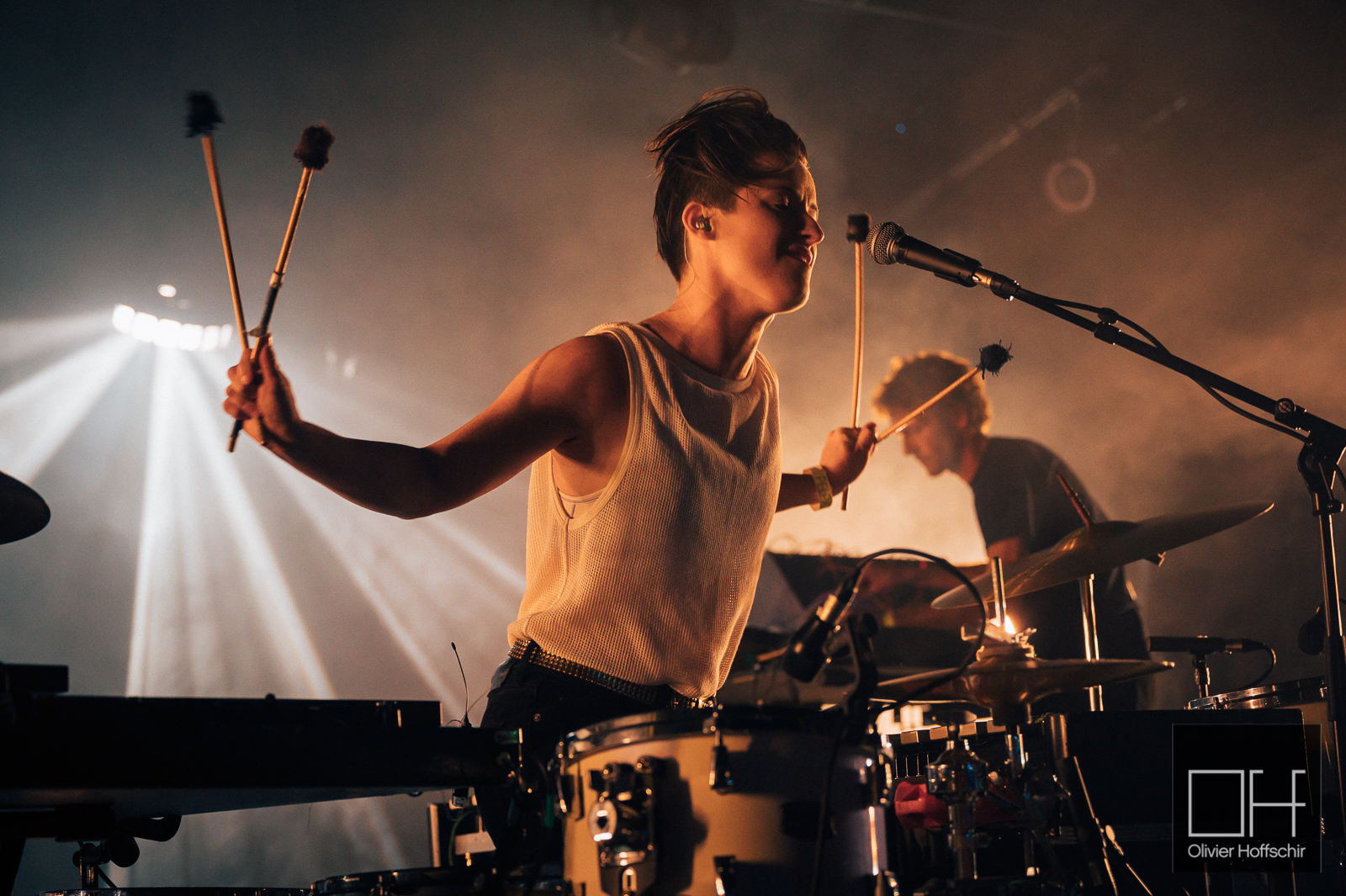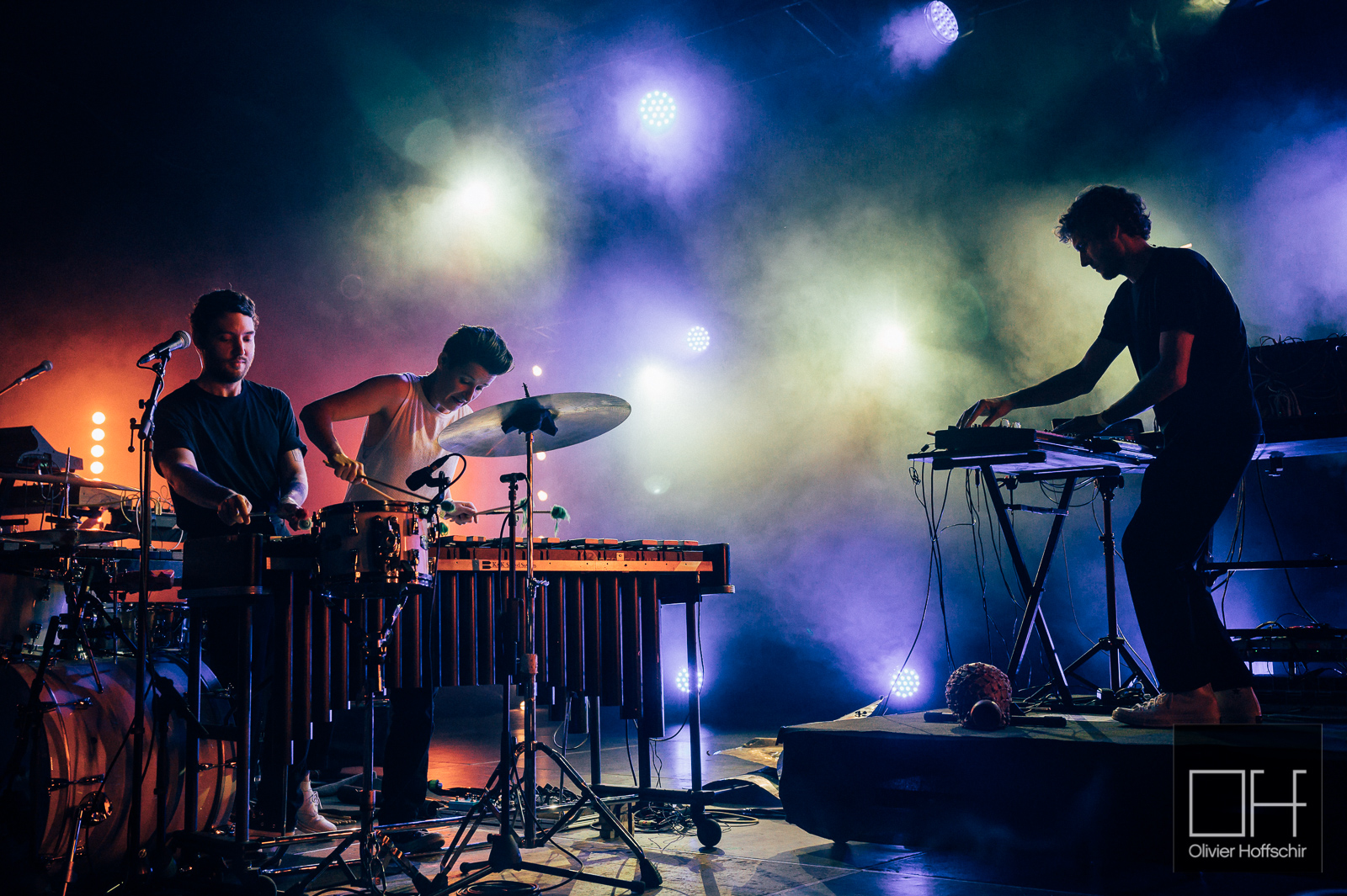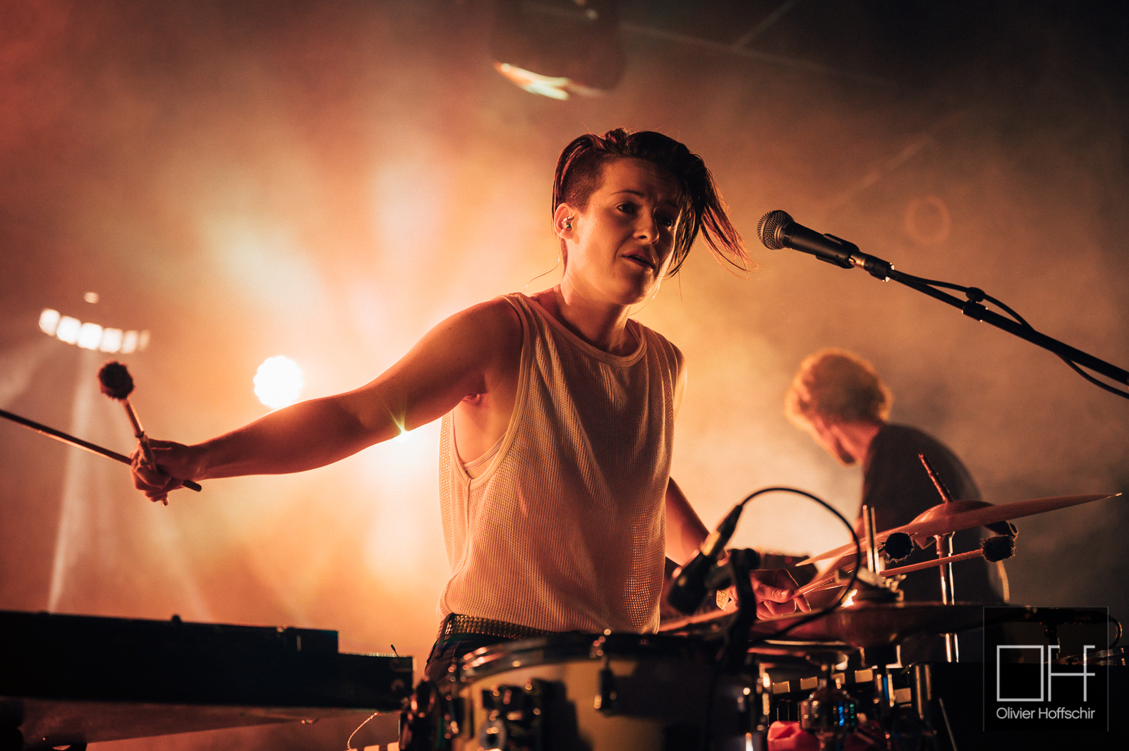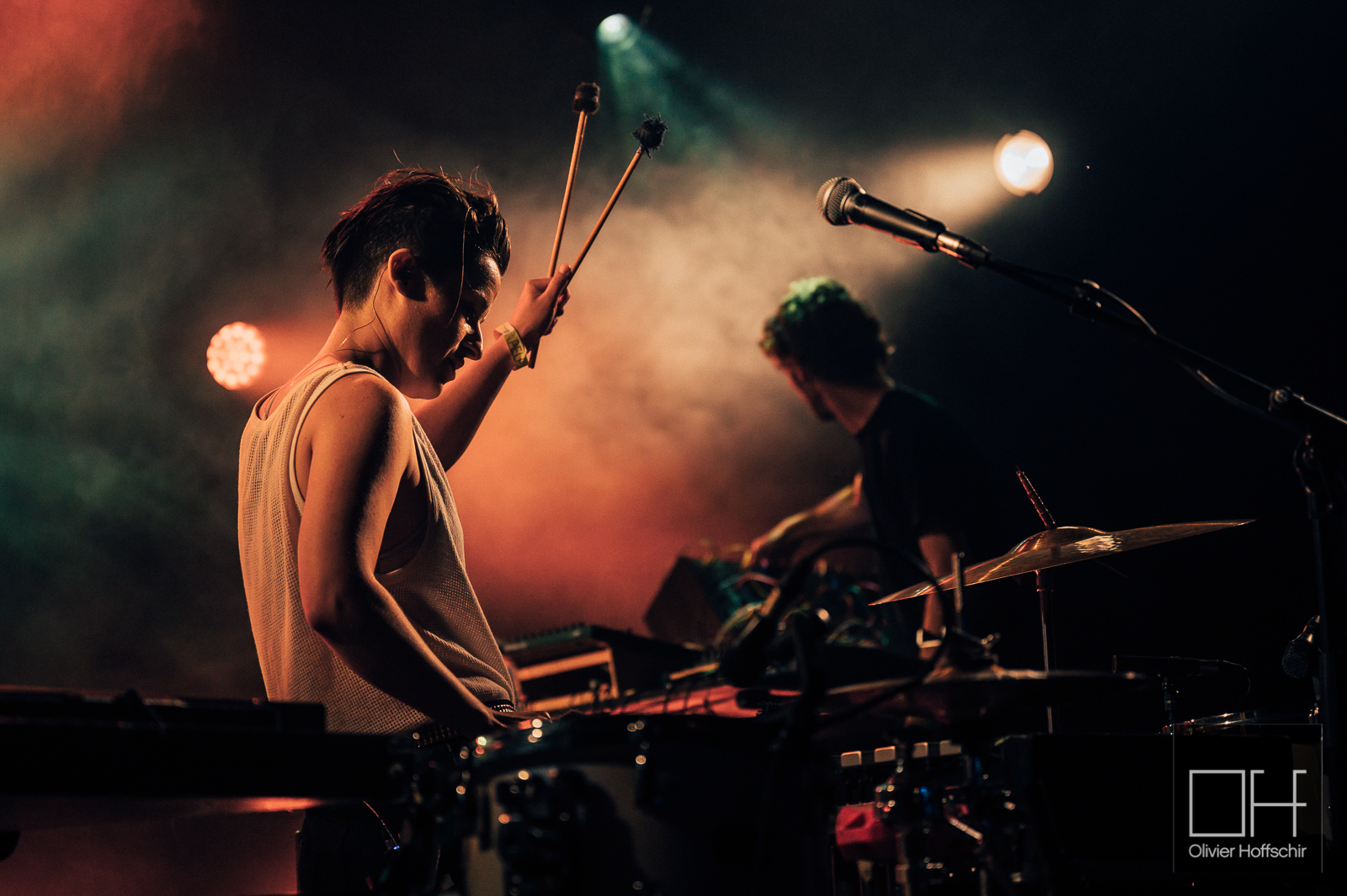 On enchaîne avec Lucie Antunes qui nous propose un son bien dreamy-dancefloor à base de percus et d’instruments analogiques. La proposition est vraiment originale et efficace et on se laissera tous embarquer dans le show. Le côté « tout est joué par des vrais instruments » donne par moment un petit côté « étalage de matos », mais ça va avec le concept, et ça fait plaisir de voir 3 musiciens donner vie physiquement à la musique, plutôt que de pousser des boutons.