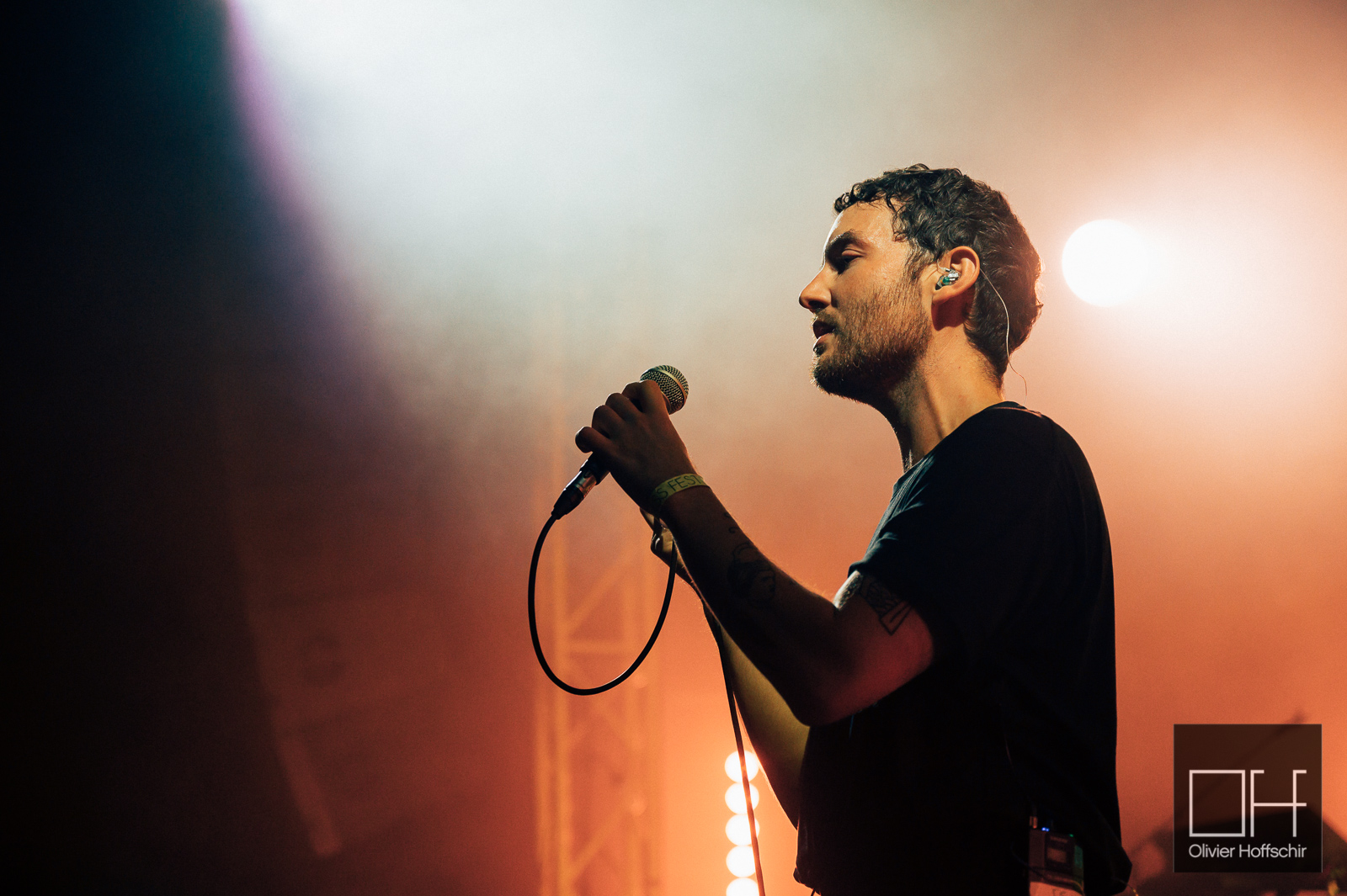 On enchaîne ensuite avec les Belges de Glauque, qui pourrait être la rencontre apocalyptique d’Odezenne et de Roméo Elvis. Les instrus sont joués live par une batterie et deux claviers (+ un peu de guitare par moment). C’est d’ailleurs avec un morceau instrumental bien puissant et bien sombre qu’ils ouvriront le concert. Ils assureront une base instrumentale originale et de qualité pendant tout le concert pour notre MC. Côté chant, c’est assez énervé, et visiblement ça n’a pas mal de souci de petites copines (la moitié des textes parlait de ça).