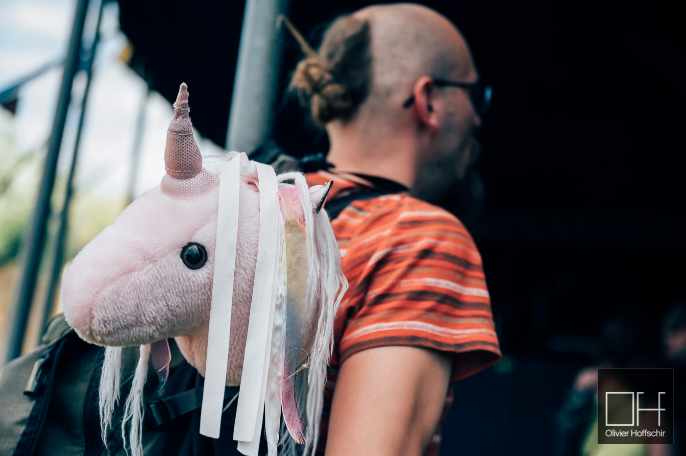 Hop, 3j ont passé et nous voilà dimanche (hé oui, on ne peut pas être là tous les jours), et le dimanche c’est le jour de la sortie en famille ! On croise de nombreux enfants sur le site du festival avec leur casque antibruit sur la tête. D’ailleurs, notons qu’il y a un gros coin “jeux de société” aménagé pour passer le temps pendant les concerts qui pourrait ne pas nous passionner.