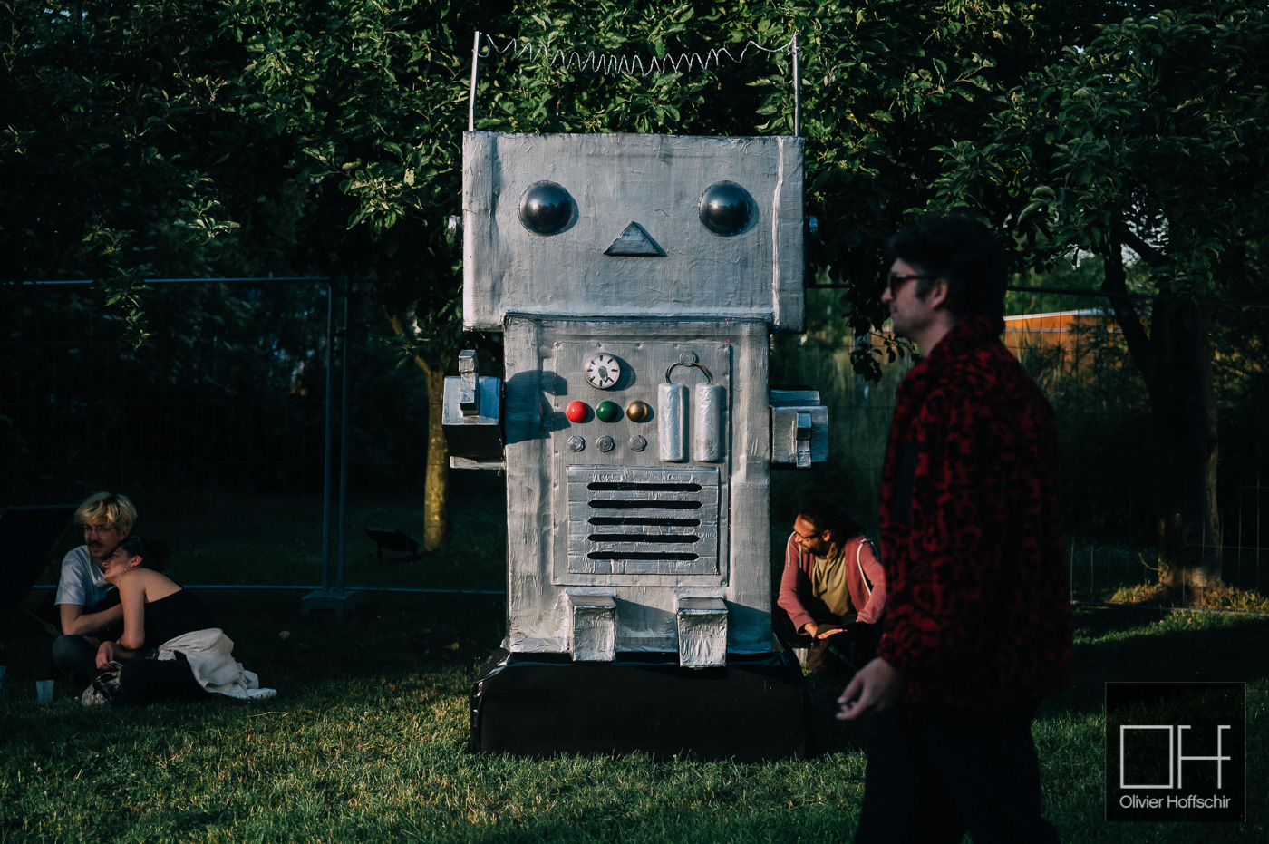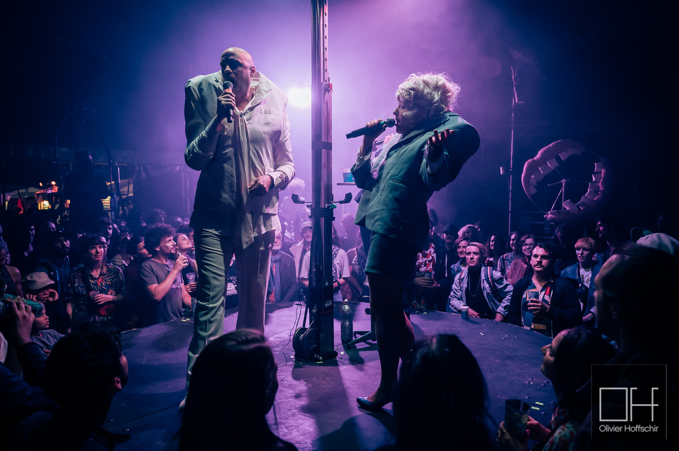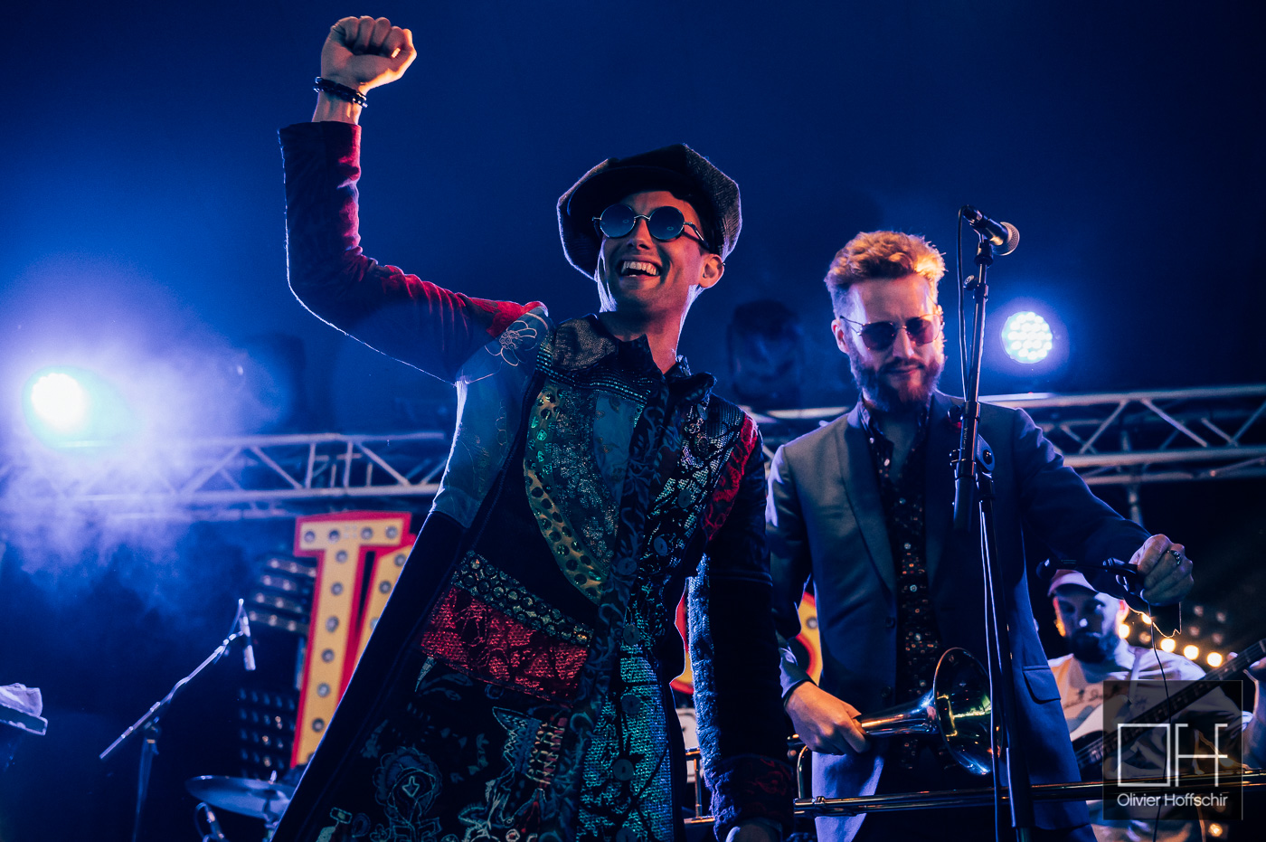 Après la débauche d’énergie anglaise, on laisse retomber la tension avec la pop orientalisante de Johan Papaconstantino. On sort le bouzouki et on ralentit les bpm, la transition est intense. Le chapiteau de “La Grosse” (scène) lui s’est bien rempli, on sent qu’on est sur la tête d’affiche de la soirée. De mon côté j’ai du mal à faire la transition stylistique, mais je reste intrigué par la proposition musicale clairement unique. Je serais assez partisan de le revoir dans un autre contexte (et de ré-écouter sa musique tranquillement à la maison…)