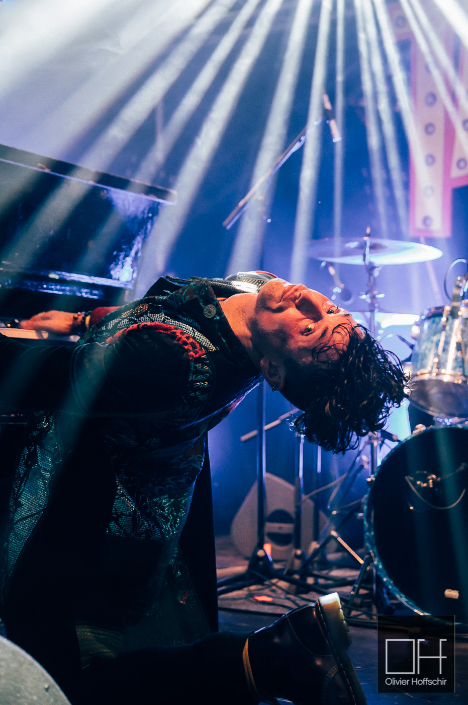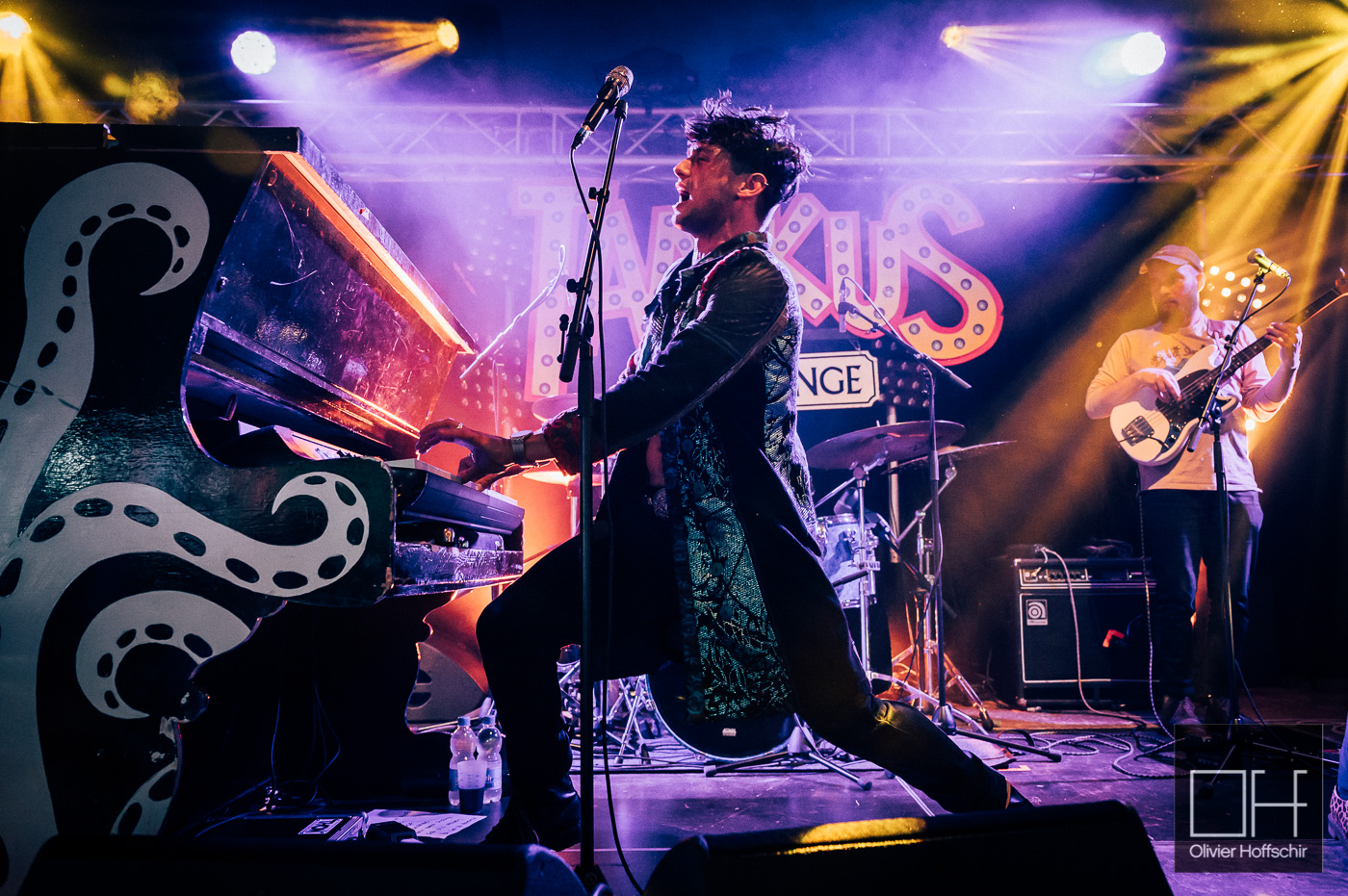 Le curseur d’intensité vient de passer à 12 (sur 10, oui) avec les anglais de Tankus the Henge. Au beau milieu de la scène trône un piano (en fait la carcasse d’un piano droit augmenté d’un clavier et de fumigènes) qui sera malmené par un chanteur à l’énergie impossible à contenir. Côté son, on est sur un savant mélange de rock, de new-Orleans (il y a un trombone et un saxophone) et de funk, le tout saupoudré d’énergie punk. Bon pour être 100% honnête, notre chanteur fait tellement le show que le son en soit devient presque secondaire et seule l’énergie demeure. Quoi qu’il en soit, la prestation est mémorable !