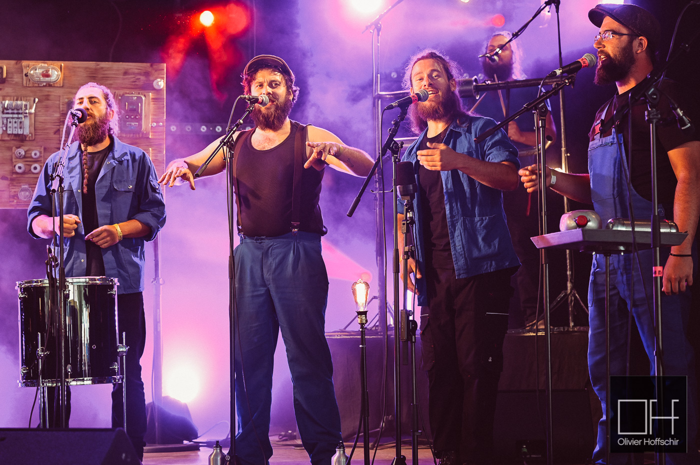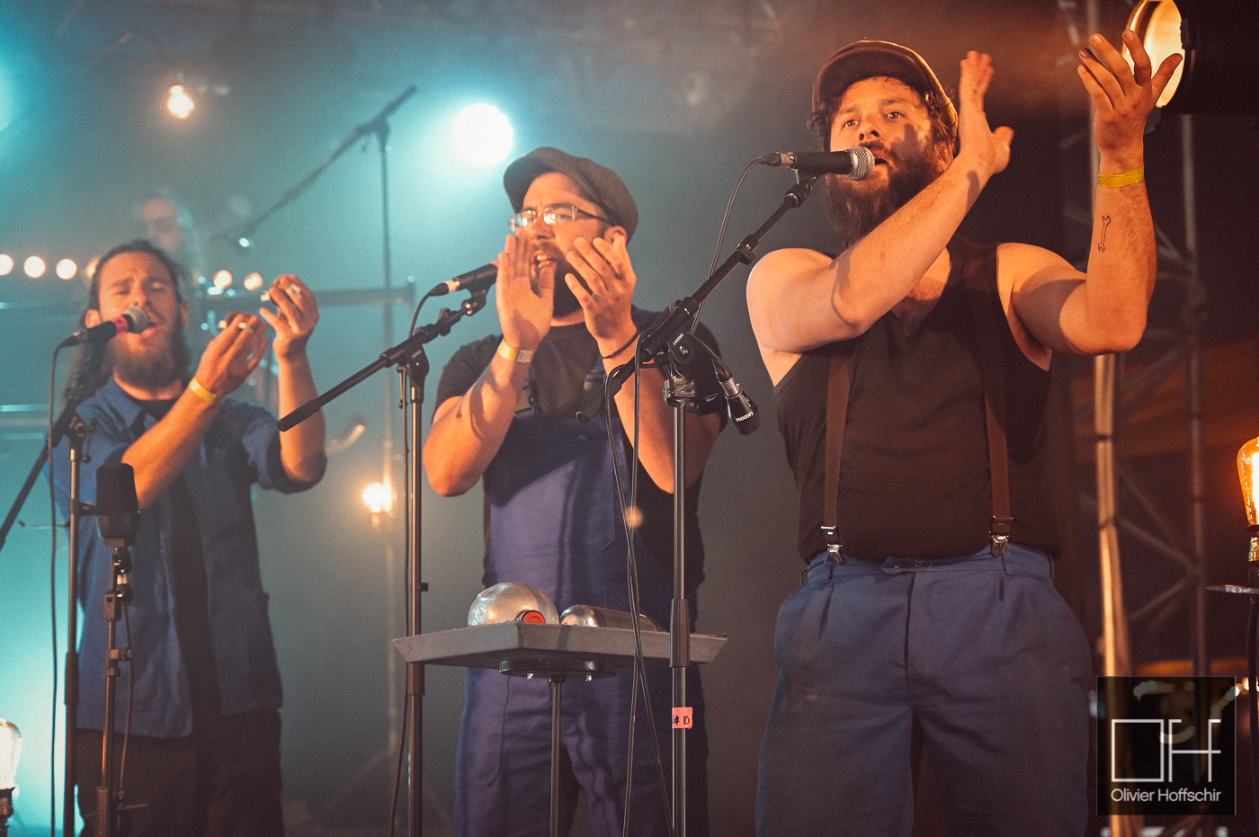 Je commence la journée sur le concert des Mécanos, spécialiste de la polyphonie basque augmentée de cambouis et de clés à molette (utilisé comme percussion pour la peine). Comme pour la Tené le jeudi, on est sur de la musique “de niche”, malgré la qualité de la prestation et la modernisation de ces chants traditionnels. On pourrait s’attendre à un engouement modéré, mais que nenni, c’est sans compter sur la qualité du public qui saura totalement tirer partie des fameuses “bourrées à trois temps”. Bravo le groupe, bravo le public !