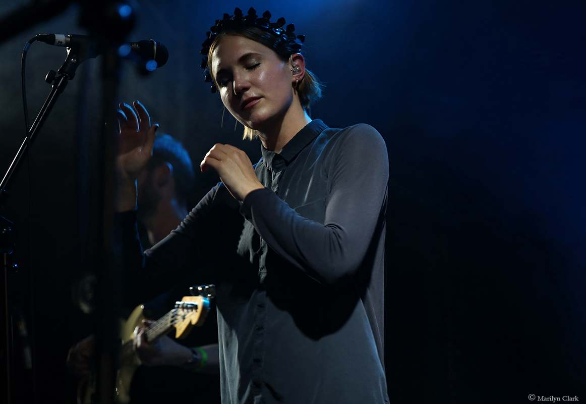 Sur scène, pas de batterie, seulement une rythmique assurée par une boîte à rythme synthétique. Dès les premières mesures, le public se trouve doucement enveloppé par une douce mélancolie. Porté par des compositions soignées et surtout la voix délicate et angélique de sa chanteuse, Woman’s Hour envoute et captive. On fermerait presque les yeux pour se laisser aller à la lévitation. A l’instar de leur morceau, Darkest Place, c’est aérien et terriblement langoureux. La gestuelle de Fiona en est la parfaite illustration car le cygne noir ondule son corps au rythme de la musique, ses bras se déploient et suivent délicatement les mouvements mélodiques. Le groupe n’a pas froid aux yeux et même une reprise comme Dancing in the Dark de Bruce Springsteen ne leur fait pas peur et se réapproprie le morceau sans aucune hésitation. C’est délicat, audacieux et le résultat est séduisant. La voix satinée et la présence de Fiona fait presque tout. Les arrangements sont minimalistes ce qui la valorise d’autant plus. On en oublierait la version originale du Boss. Quand Fiona annonce le titre Conversations qui est aussi le titre de leur premier album, la rythmique se fait plus pop et synthétique à l’instar du titre Her ghost. On se laisse aisément caresser pour la douceur de la mélodie.