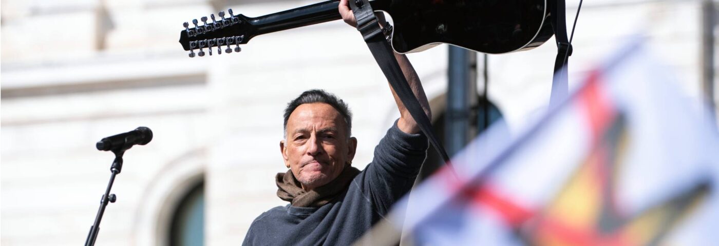 The Boss se prépare à lancer sa tournée américaine « Land Of Hope And Dreams » cette semaine (31 mars) à Minneapolis, mais il s'est arrêté tôt au parc régional d'Harriet Island à St. Paul, Minnesota, samedi 28 mars, pour se produire lors de l'événement de protestation.