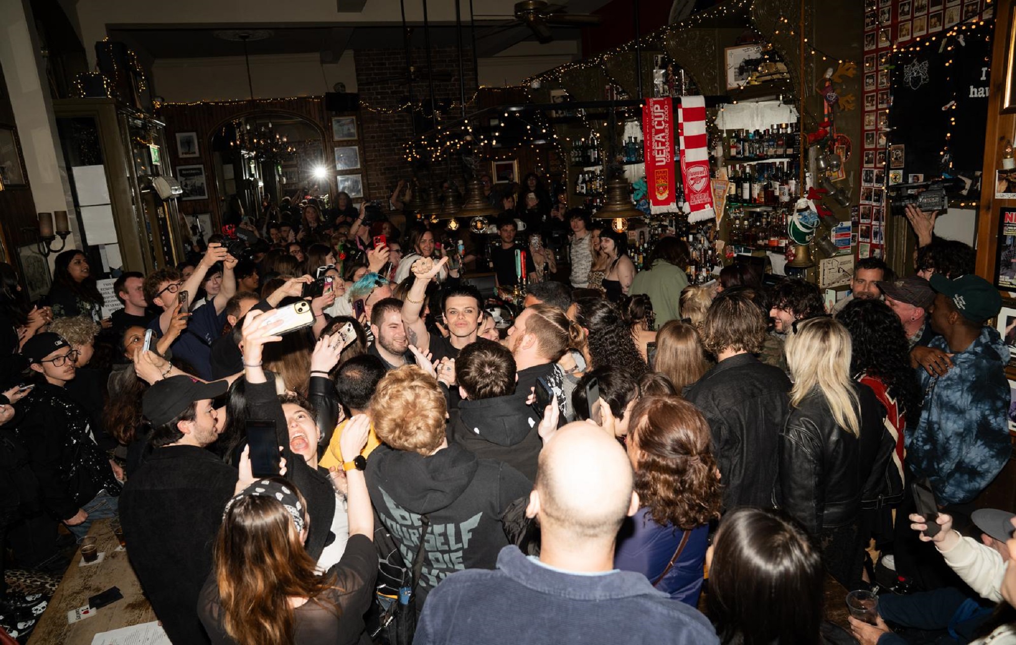 L'auteur-compositeur-interprète – le vrai nom Dominic Harrison – a fait une apparition au Hawley Arms à Camden pour célébrer la sortie de son nouveau single « Lovesick Lullaby '', qui présentait également des images de Yungblud dans le pub.
