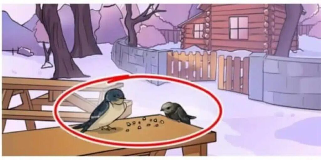 Si vous avez déjà observé l’image, vous constaterez que tout semble parfaitement ordinaire. La neige tombe doucement, la fumée s’échappe tranquillement de la cheminée, et les arbres sont dénués de feuilles. Mais… il y a un détail qui cloche. Comme quand vous cherchez vos lunettes, sans les voir sur votre nez, ce détail vous a peut-être échappé.