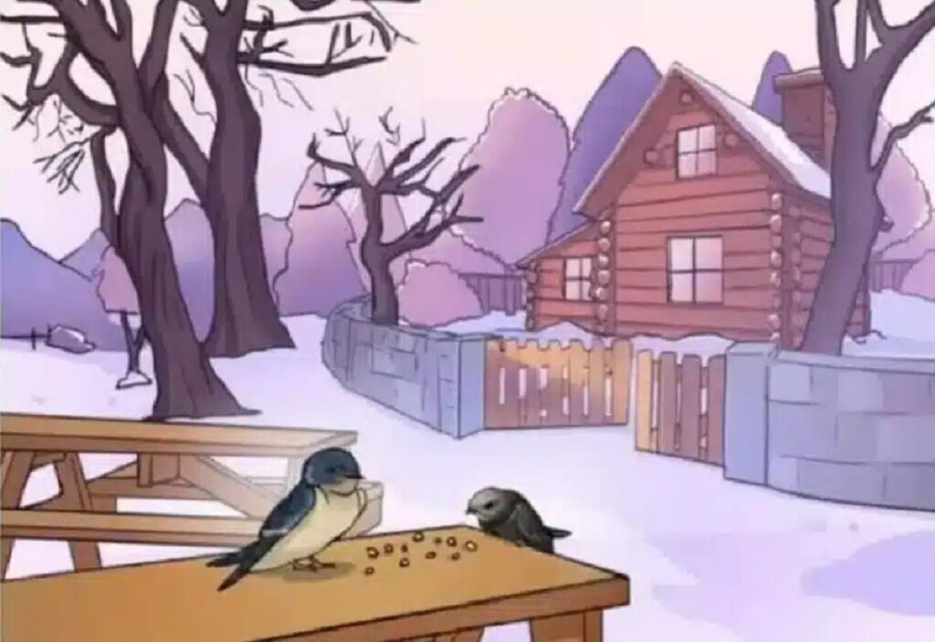 Alors, avez-vous trouvé l’erreur ? L’incohérence réside dans la présence d’hirondelles autour de la maison. Ces oiseaux, célèbres pour leur migration, quittent nos régions dès l’arrivée de l’hiver pour des destinations plus chaudes. Leur présence dans un paysage enneigé est donc tout sauf naturelle.