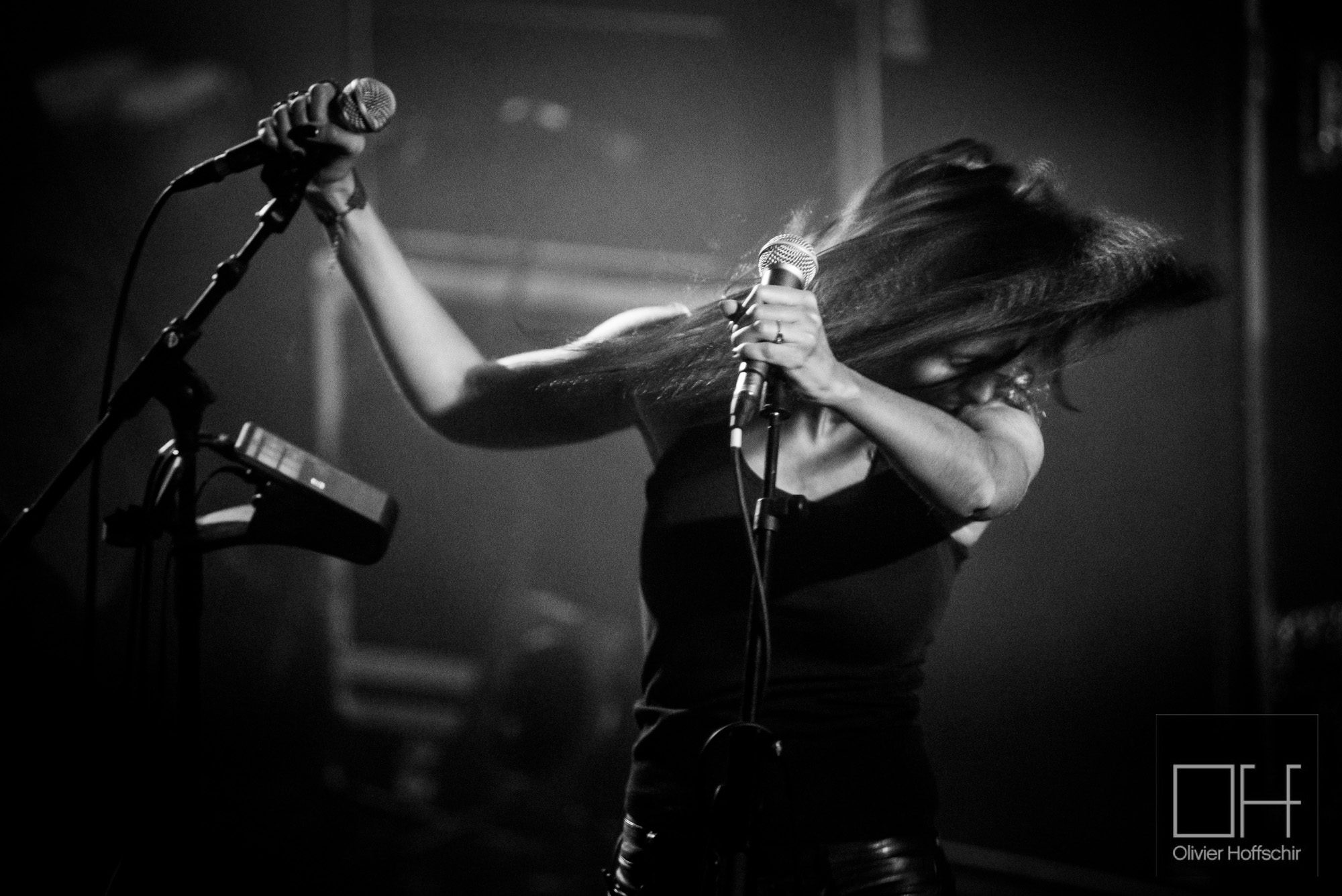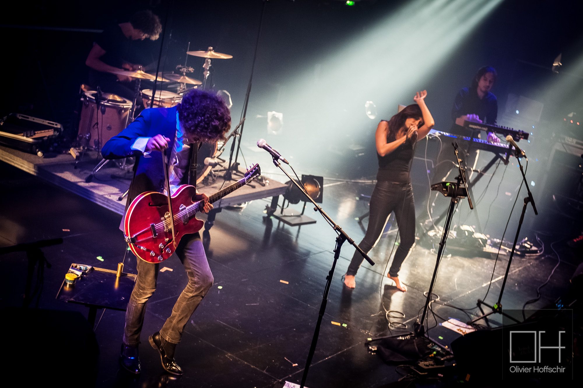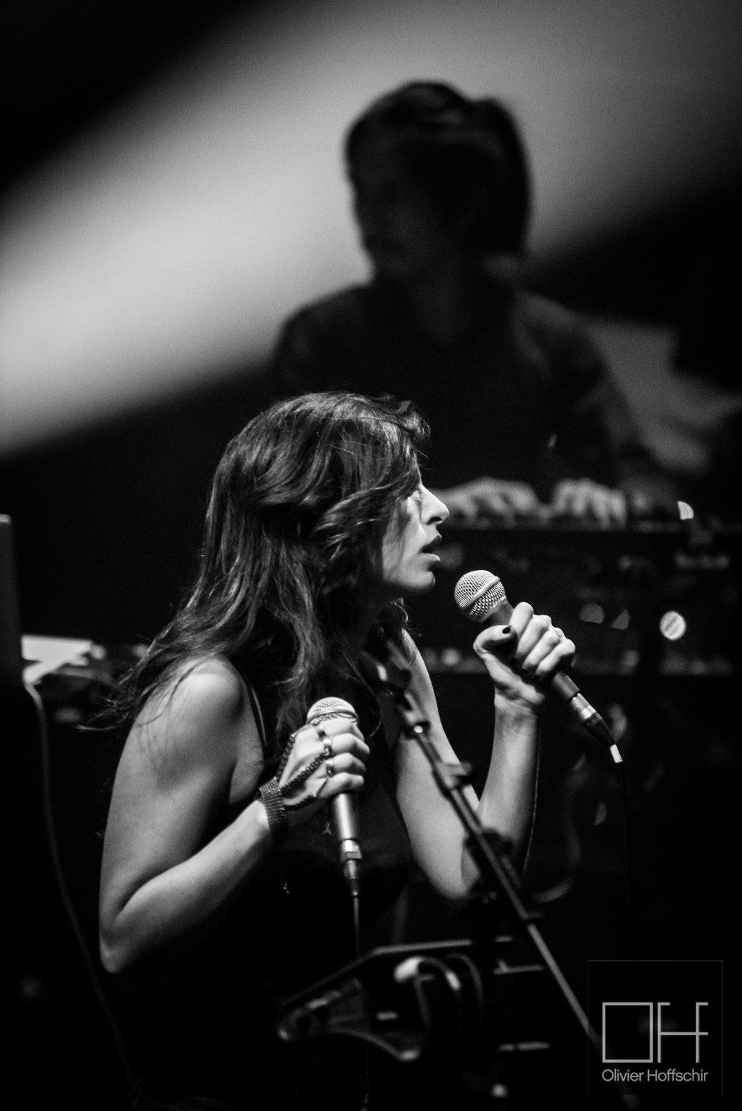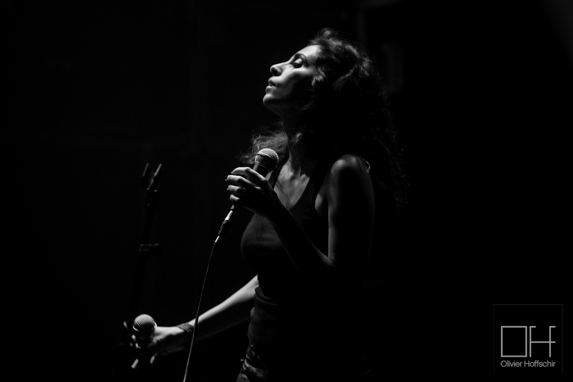 Il est souvent question des femmes, de leurs combats à l’instar du morceau Aziza. La chanson raconte l’histoire d’une femme qui a pour habitude de se faire avoir par les hommes et qui à la fin, renverse la situation. Yasmine esquisse d’ailleurs un léger sourire en narrant l’histoire. Elle adore communiquer avec le public. Tout au long de ce morceau, la batterie claque et se fait tempêtueuse sur des rythmes rock n’roll effrénés. Elle module sa voix et elle chante même avec deux micros à la fois. Le public semble entièrement captivé. On ne sait qui de sa musique ou de ses mouvements ondulatoires est le plus hypnotique. Sur le titre Khalas (seul mot que je connais qui signifie « assez »), je me laisse charmer et envahir par l’émotion. Une grande complicité émane entre elle et ses musiciens, d’ailleurs le batteur s’avère être un compagnon de longue de date. Sur Beirut, la mélodie se fait plus douce. Yasmine nous apprend alors qu’elle tire cette chanson d’un poème libanais d’Omar El Zenni écrit dans les années 40. Sur Deny, il est moins question d’artifices sonores, l’orientalisme de ses compositions s’associe cette fois à la folk. Avec Yasmine Hamdan, vous vous risquez à une belle claque scénique. Elle fait partie de ses artistes que vous ne pouvez ne pas voir en live tant elle est charismatique. Je ne saurai trop vous recommander l’écoute de son album « Ya Nass » qui révèle de vrai petits trésors mélodiques.