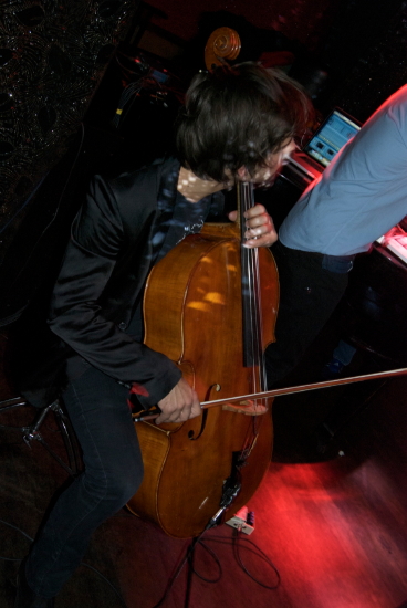 Nous en étions donc a la première note de ce live : début en fanfare, grandiose, ils annoncent la couleur. Du départ on est comme fasciné, pris au jeu. Personne n’ose aller danser, pas âme qui vive sur la micro piste malgré l’invitation cordiale a la fouler de bon coeur. Bien sur que non : tous préfère milles fois observer ce déluge de note si rondement mené. Très vite, on constate que ces 2 la ne rigolent pas : ils connaissent leur matériel jusqu’au bout des doigts, en rendant l’utilisation en live presque magique. Je ne parle même pas de leur dextérité au violon ou violoncelle, ce n’est pas discutable. Le live se constitue essentiellement de leurs morceaux les plus connu pour finir dans la joie et la bonne humeur. Un peut trop tôt a mon goût, et pour beaucoup d’autres aussi j’imagine : en effet la prestation aura duré a peine une heure, mais il faut préféré la qualité a la quantité m’a t’on toujours dit. Je m’estime donc heureux.
