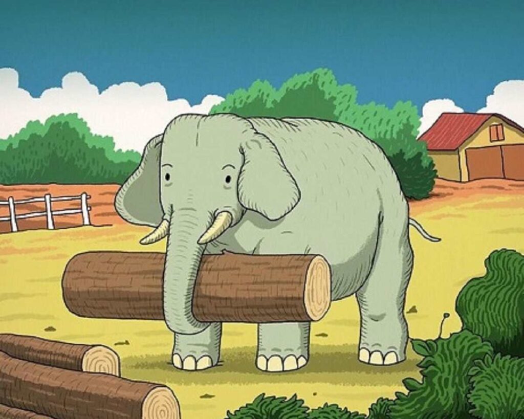 L’image montre un éléphant tenant une bûche avec sa trompe, tandis qu’une grange se dresse en arrière-plan, entourée de l’ambiance rustique d’une ferme. Mais cet éléphant n’est pas seul. Quelque part dans le décor, un autre animal se cache habilement. Selon certains, à peine 1 % des personnes parviennent à le repérer en moins de 11 secondes. C’est un véritable test de concentration et d’attention aux détails, idéal pour évaluer votre agilité visuelle.