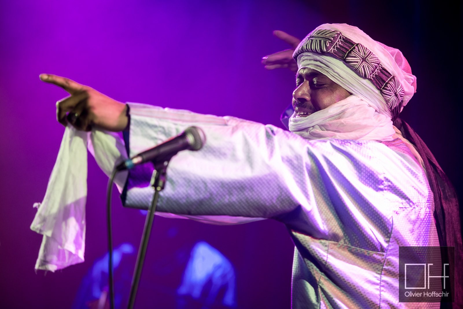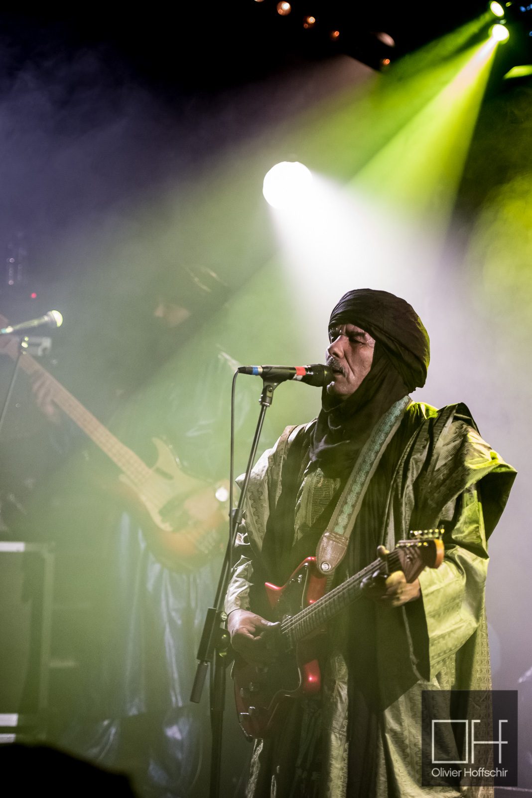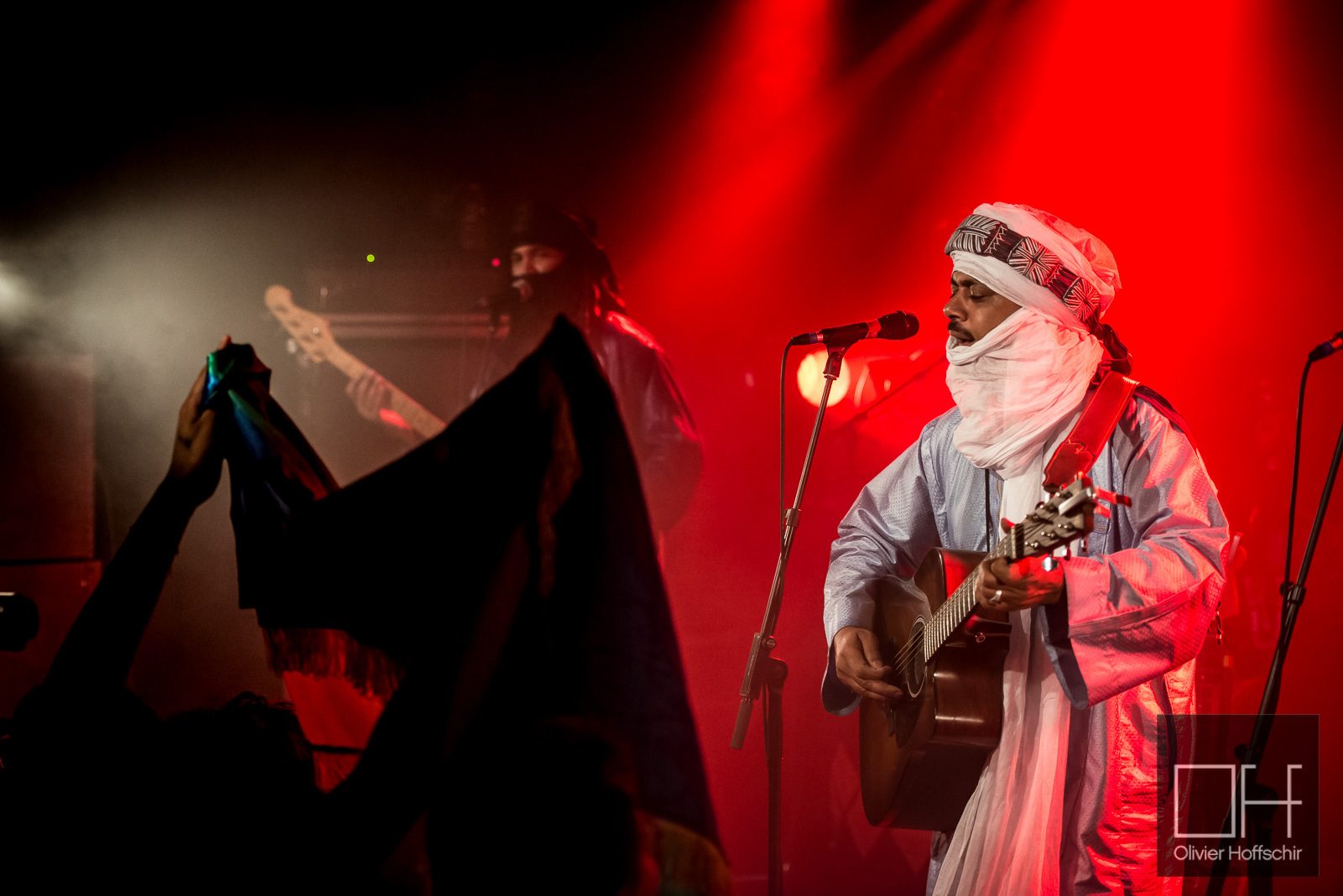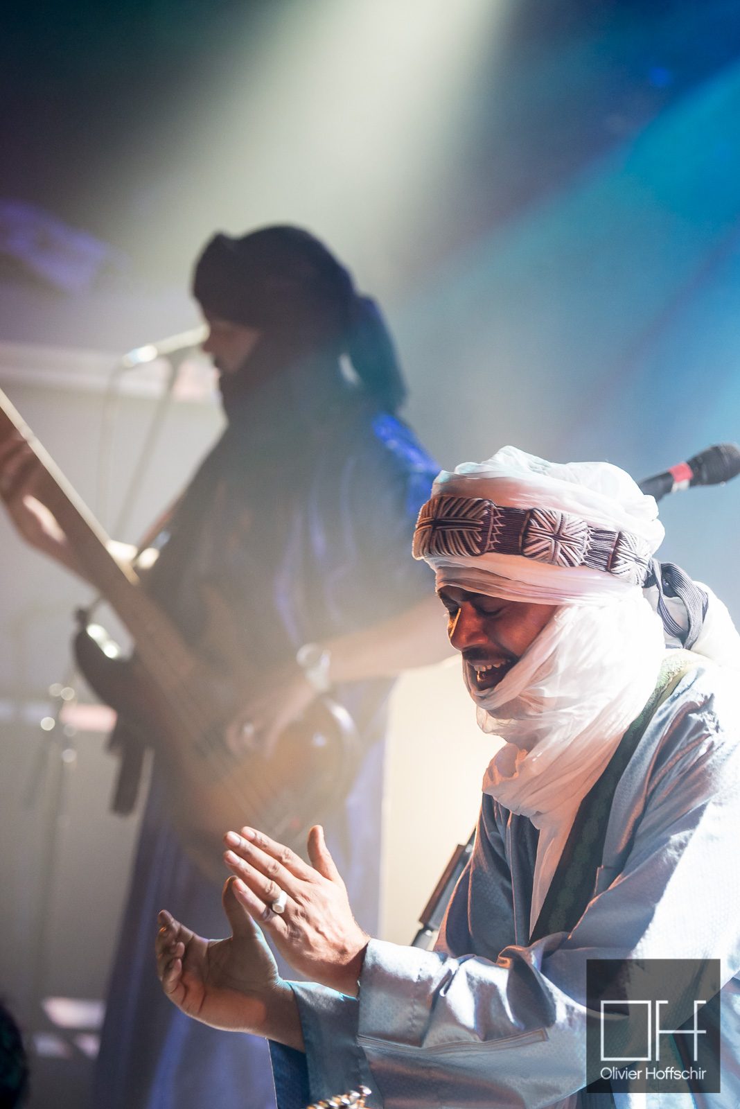 Le public est tassé dans la petite salle de la Maroquinerie, il fait déjà chaud lorsque le groupe monte sur scène. Drapés de chèches et de turbans traditionnels, les musiciens décrochent les premiers sons de guitare, on décolle.