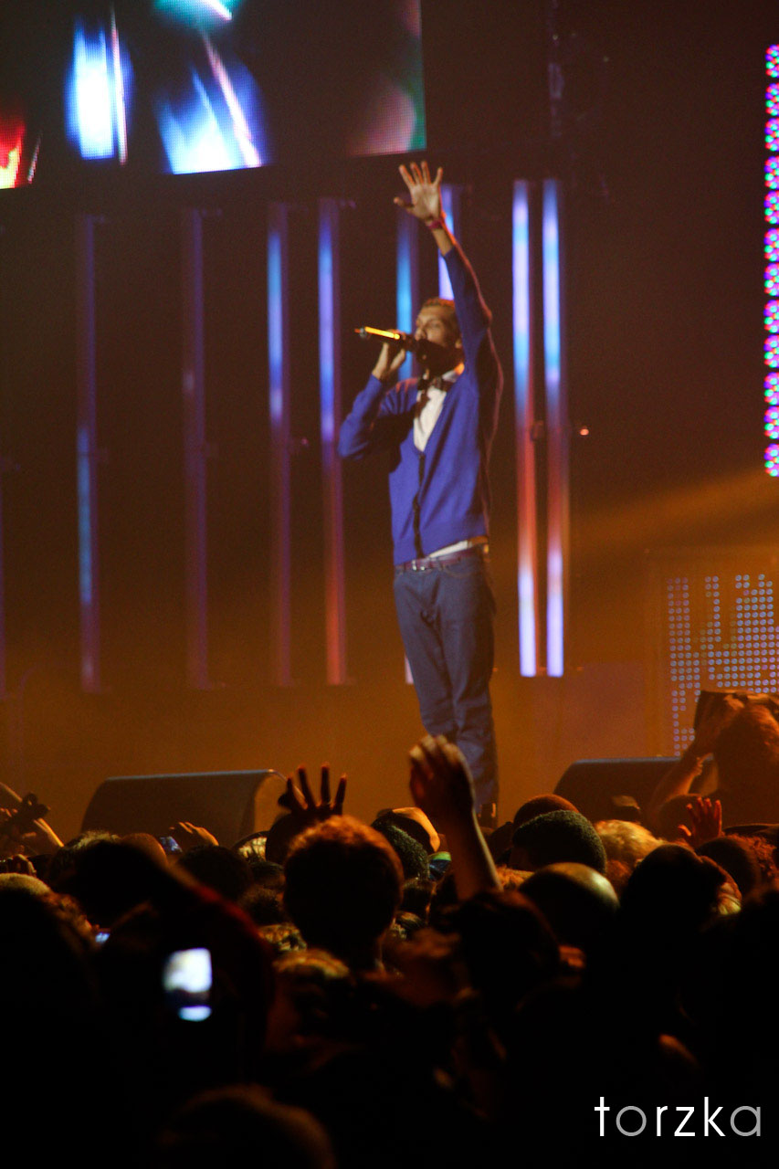 Je ne vais pas vous servir le fameux « Formidable » trop facile… mais il est clair que Stromae était la tête d’affiche attendue de ce vendredi soir aux Transmusicales. Devant 7000 personnes et un hall 9 archi bondé, le chanteur belge a embrasé le public rennais. S’appuyant sur un vrai jeu scénographique et jouant d’une identité visuelle moderne et électronique, Stromae a conquis un public universel et réussit le pari de faire danser simultanément enfants, parents, grands parents mais aussi les membres du groupe Nova Heart que j’ai retrouvé dans le public. Mention spéciale pour ses chorégraphies inspirées directement du « krump » que je ne saurais reproduire mais qui vous donne une furieuse envie de danser. Alors, quand le rappel intervient, Stromae dédicace amicalement Papaoutai à son ami Jean-louis Brossard et à sa famille. Il est de ces artistes qui n’oublient pas ceux, qui lui ont fait confiance, il y a trois ans de cela. Chapeau… l’artiste !