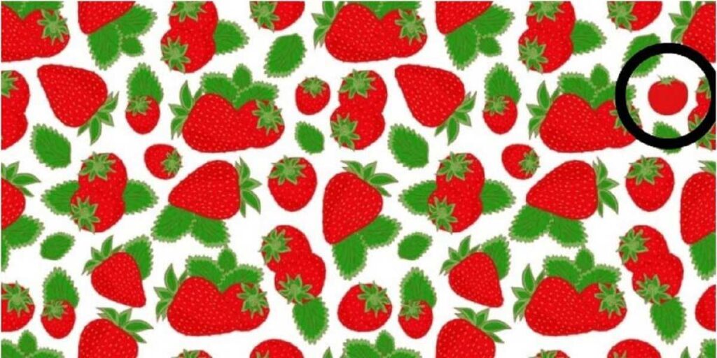 Cette fois-ci, imaginez-vous face à un champ de fraises bien rouges, prêtes à être cueillies. Au milieu de toutes ces fraises appétissantes, se trouve une intruse : une tomate. Votre objectif est simple, mais le temps presse : parviendrez-vous à déceler cette tomate en moins de 30 secondes ? Beaucoup se font piéger par ce type de défi ; seule une minorité de personnes a la vivacité d’esprit nécessaire pour le résoudre dans les temps.